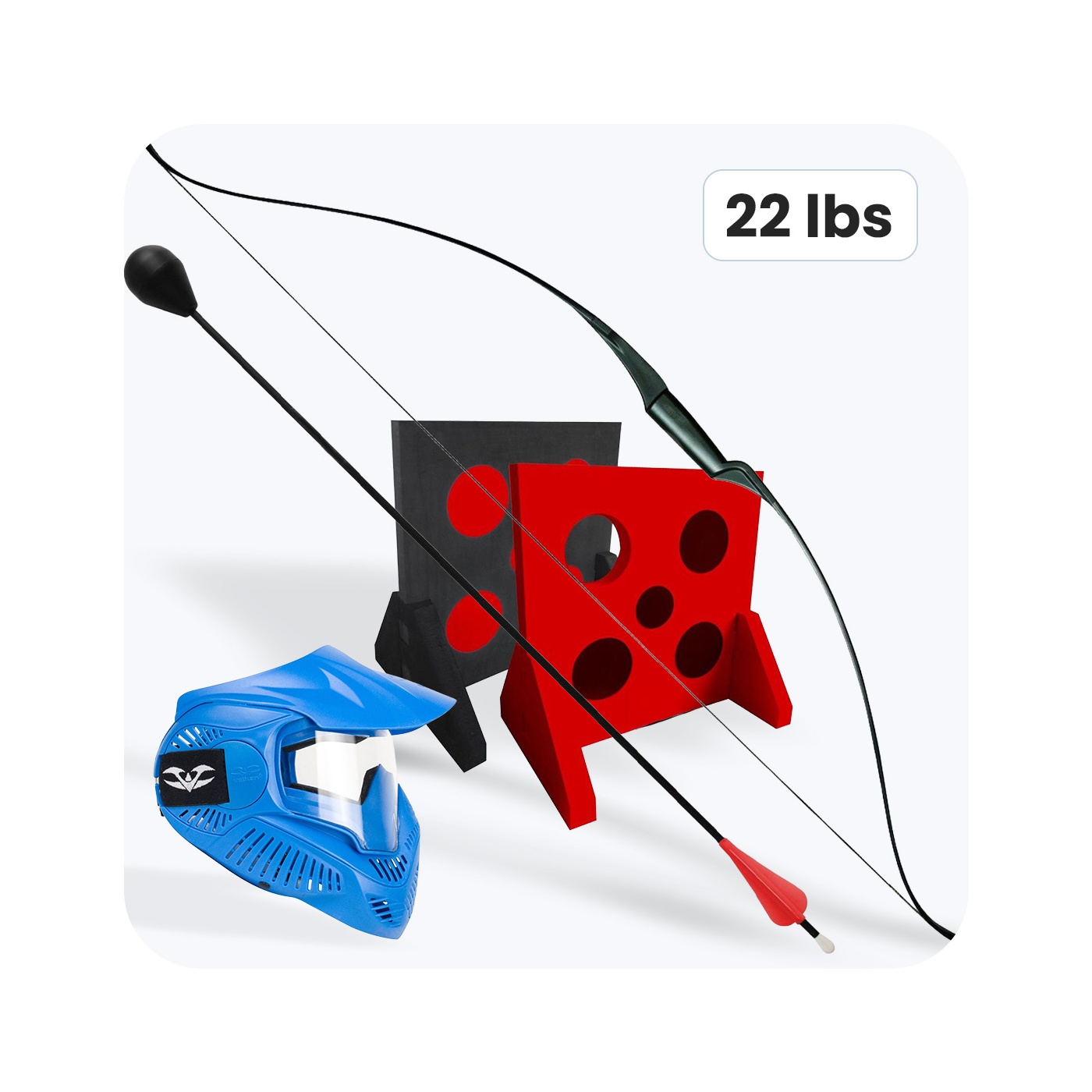 Łuki 22 lbs sprawdzają się u początkujących i bardziej doświadczonych graczy, oferując precyzję i płynność. Strzały pacynki z lekką konstrukcją i piankową końcówką pozwalają prowadzić szybkie, kontrolowane rozgrywki.