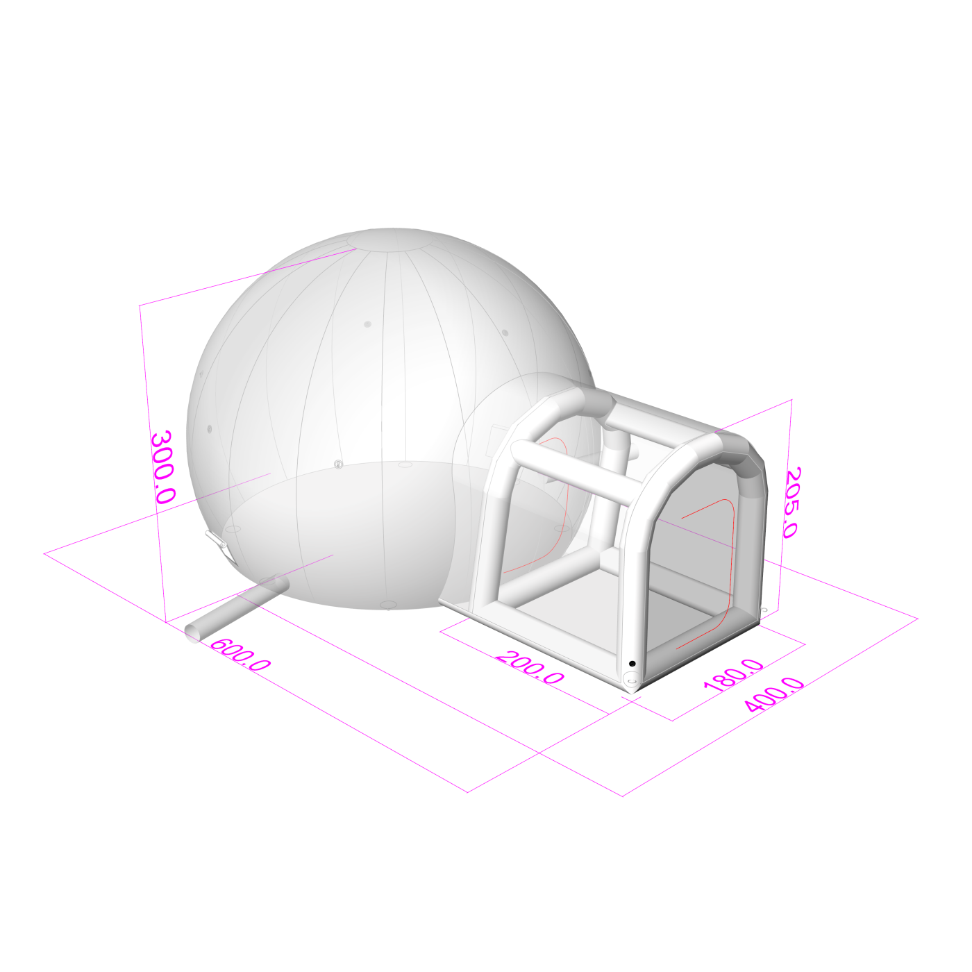 Dmuchana kopuła na balony - Bubble House o średnicy 4 m to uniwersalna atrakcja, która sprawdzi się zarówno jako przestrzeń zabaw, jak i fotostrefa na eventach komercyjnych. Dzięki większej przestrzeni mieści od 6 do 8 dzieci i oferuje dwa rękawy na dmuchawy – może działać na jednym, przy drugim zwiniętym. Zestaw nie zawiera balonów. Postaw na atrakcję, która przyciąga uwagę i rozszerza możliwości Twojej oferty.