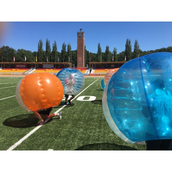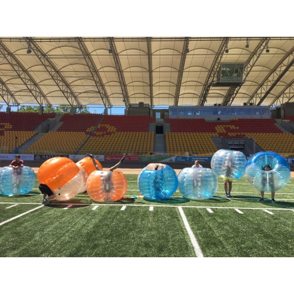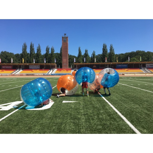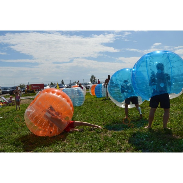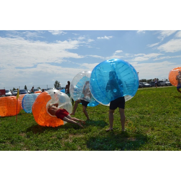 Dmuchane kule, do których można wejść i bezpiecznie zderzać się z podłożem oraz innymi graczami, wykorzystasz na milion sposobów! Tradycyjny to oczywiście Bubble Football, czyli piłka nożna w kulach. Bubble Bowling to odmiana ludzkich kręgli, w której każdy po kolei wciela się w kulę. Z kolei Bubble Sumo to zabawa w przepychanie - bezpieczne zmierzenie swoich sił z przeciwnikiem! Nie sposób zapomnieć o Bubble Rugby czy Last Bubble Man Standing - tak naprawdę jednak ilość pomysłów jest nieskończona. Ogranicza Cię tylko wyobraźnia! Dmuchane atrakcje najlepiej sprawdzą się na świeżym powietrzu, ale z powodzeniem można je wykorzystać także w zamkniętych halach sportowych. Uczestnicy mogą w nich biegać, skakać, zderzać się z innymi graczami i rzeczami. Niezależnie od tego, którą formę sportu wybierzesz, Bumper Ball TPU Premium zapewni wszystkim uczestnikom wiele godzin radosnej, beztroskiej zabawy, bez względu na wiek!