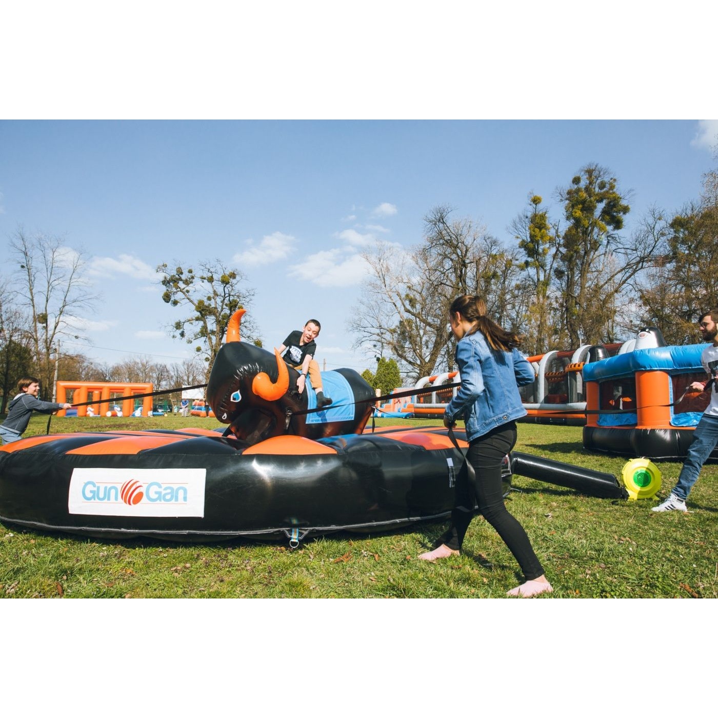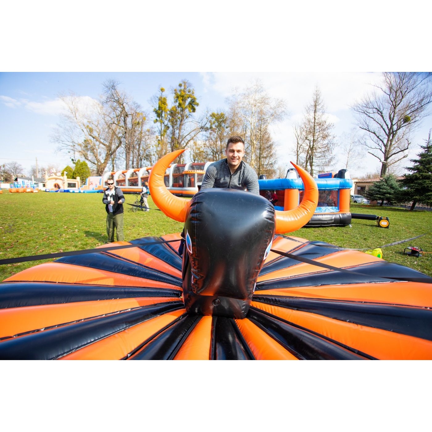 Poczuj emocje rodem z dzikiego zachodu z naszym dmuchanym bykiem Rodeo Bull! Atrakcja zapewnia mnóstwo adrenaliny i radości zarówno dla dzieci, jak i dorosłych. Idealna na imprezy plenerowe, firmowe integracje i festyny, gdzie uczestnicy mogą spróbować swoich sił w utrzymaniu się na byku. Bezpieczne i miękkie podłoże zapewnia świetną zabawę bez ryzyka!
