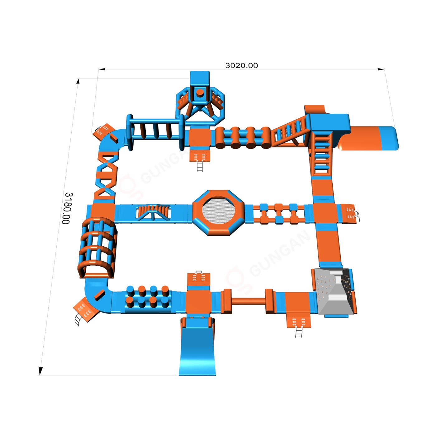 Dmuchany park wodny Zeta to kompleksowa atrakcja, która łączy w sobie różnorodne przeszkody, zjeżdżalnie i miejsca do zabawy na wodzie. Zaprojektowany z myślą o imprezach plenerowych i dużych grupach, zapewnia aktywność i rozrywkę dla uczestników w każdym wieku. Jest to doskonały wybór do organizacji eventów na świeżym powietrzu, oferujący dynamiczne wyzwania i wodne emocje.