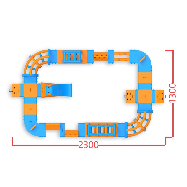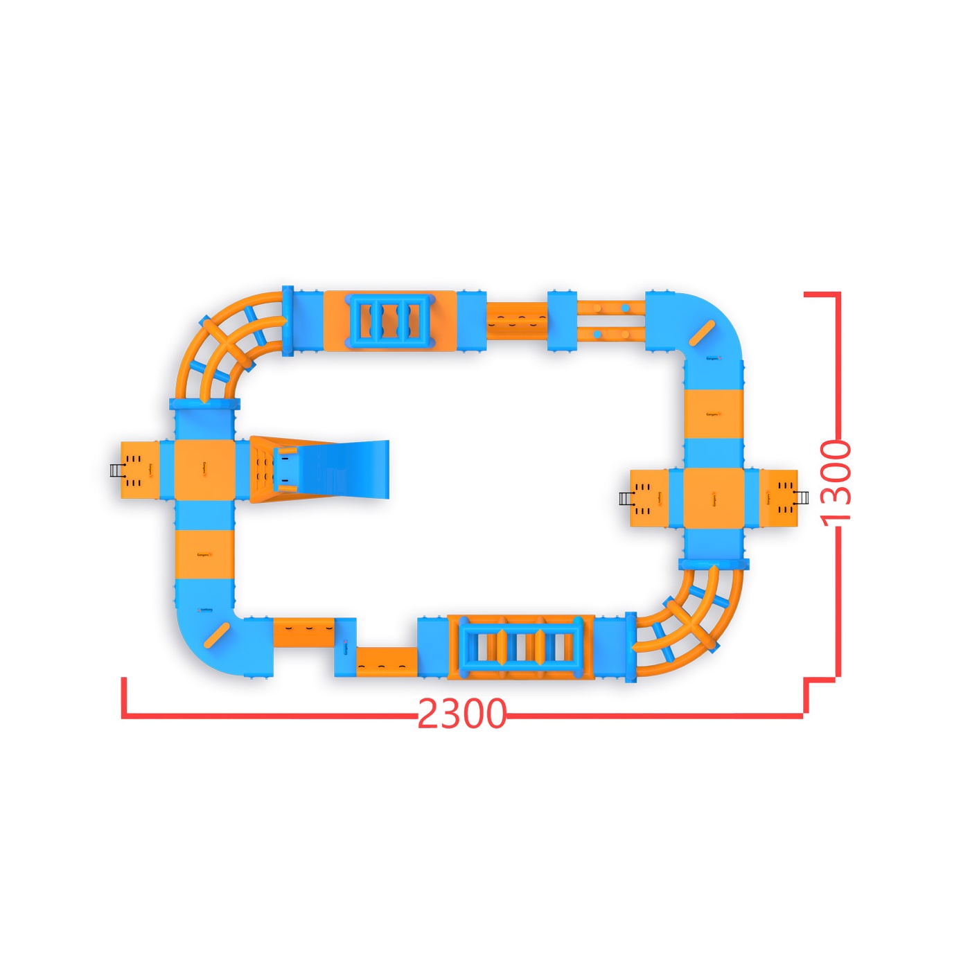 W parku Omikron każdy znajdzie coś dla siebie - zjeżdżalnia przyciąga wzrok od samego wejścia, przeprawa z drążkami domaga się pełnego zaangażowania, a wspinaczka i ściany boczne - sprytu i siły. Zwarty układ 299 m² zaprojektowany dla 32 osób jednocześnie sprawdza się na mniejszych akwenach, gdzie liczy się intensywność atrakcji na każdym metrze powierzchni.