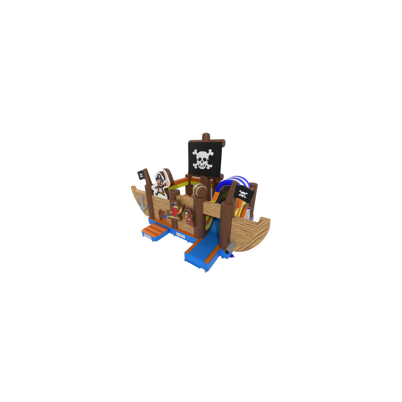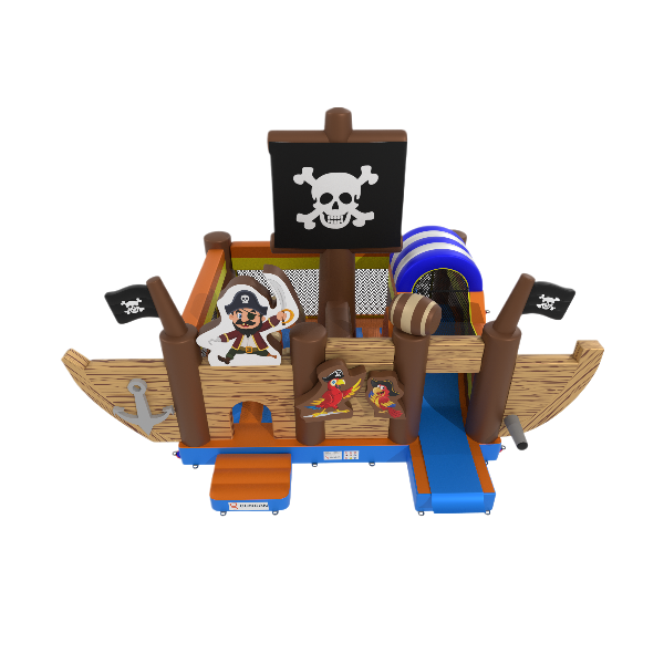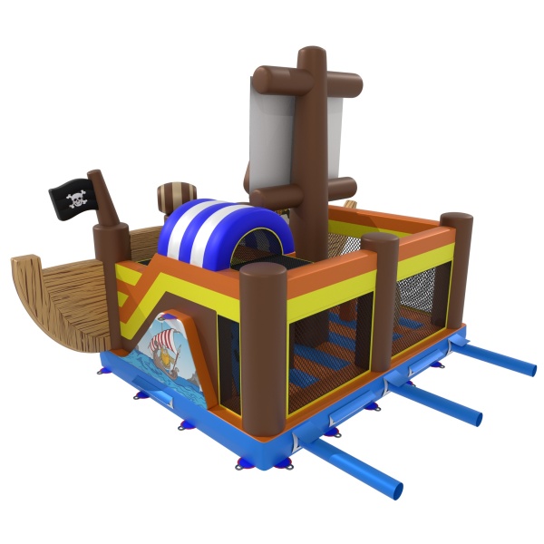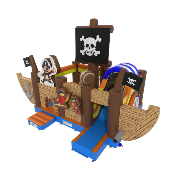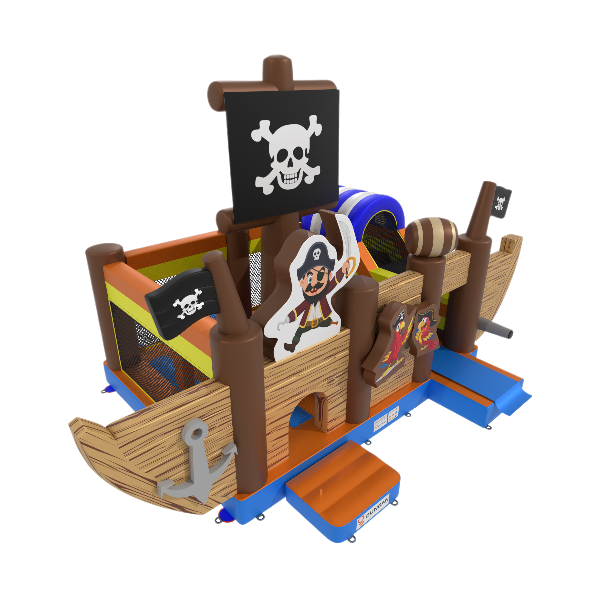 Dmuchany plac zabaw statek w motywie pirackim dedykowany jest głównie dla dzieci, które poszukują przygody w czasie zabaw z przyjaciółmi i rówieśnikami. Dmuchany plac zabaw jest ogrodzony i miękki, a dzięki temu całkowicie bezpieczny podczas użytkowania. Zwykle składa się z dużej oraz małej zjeżdżalni, dlatego dzieci w różnym wieku będą się na nim świetnie bawić.Dmuchany plac zabaw statek w motywie pirackim bardzo dobrze sprawdzi się na piknikach rodzinnych, imprezach integracyjnych i pracowniczych czy eventach innego rodzaju – w plenerze i nie tylko. Dmuchane place zabaw są doskonałą alternatywą dla większych i bardziej wymagających dmuchańców. Szczególnie polecamy tę atrakcję w przypadku rozpoczęcia biznesu.