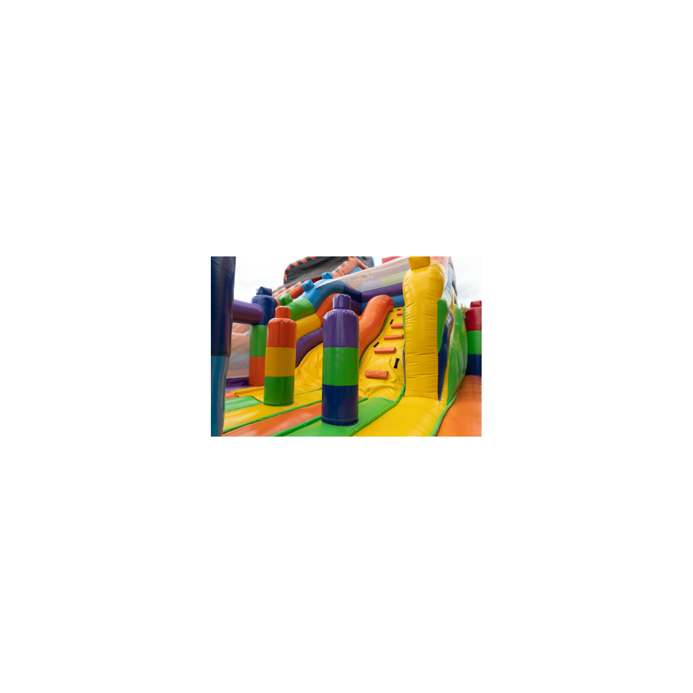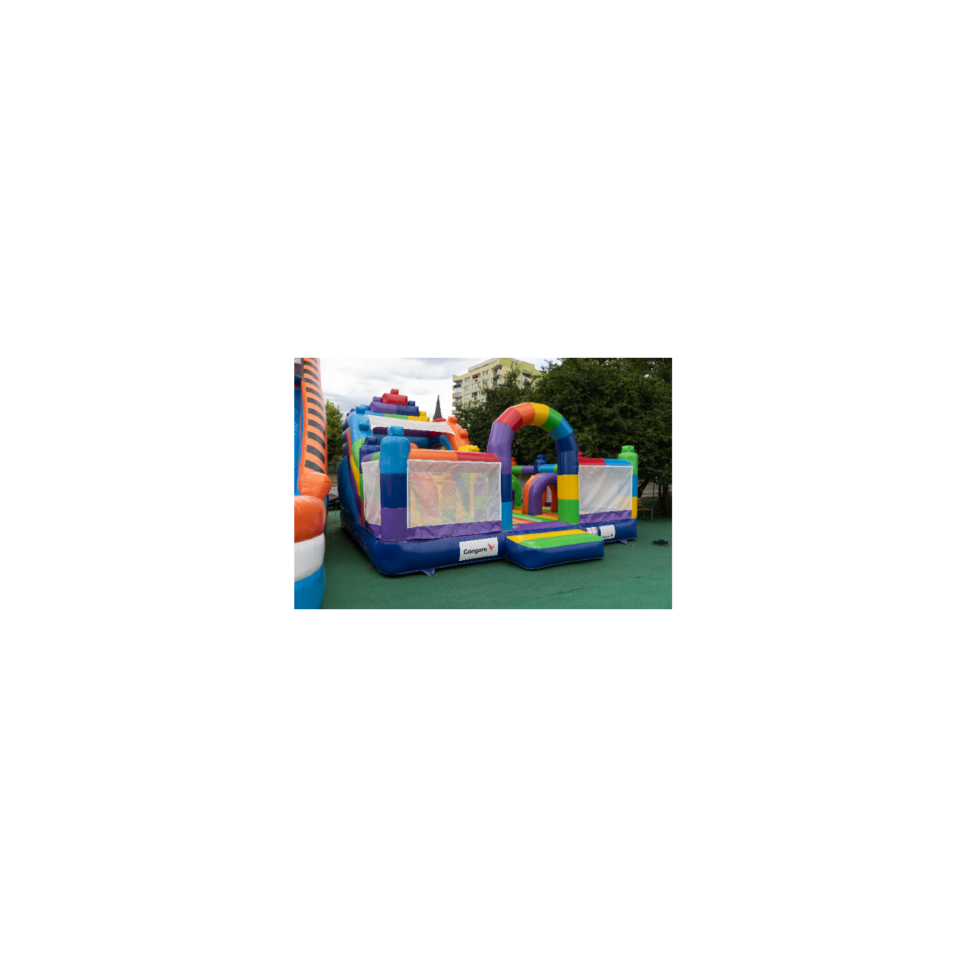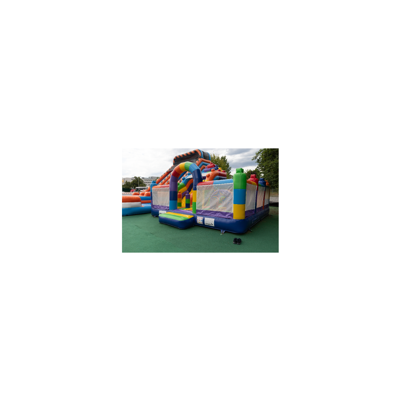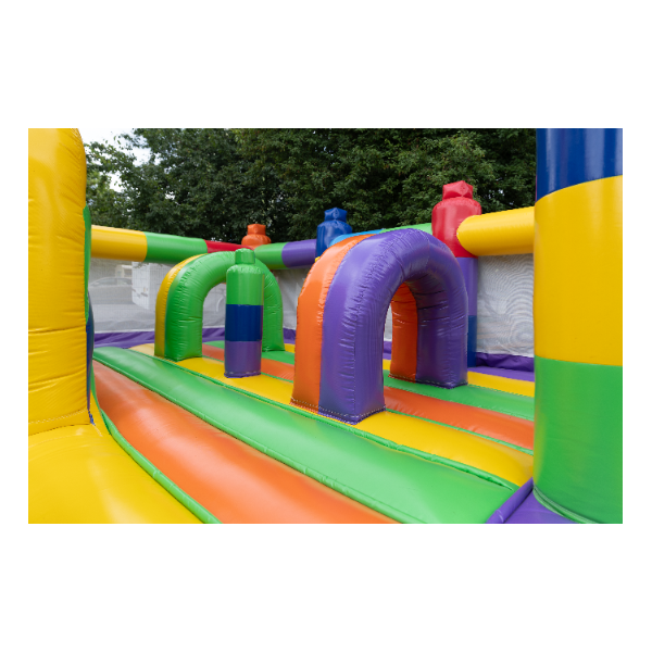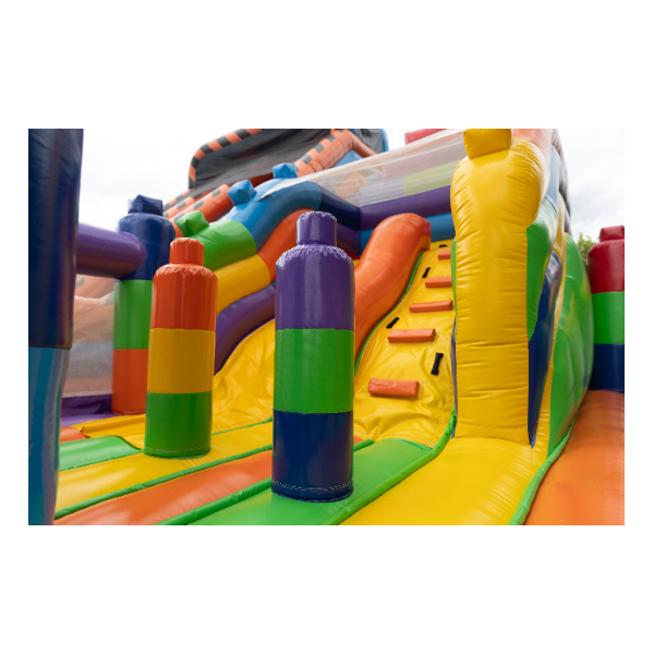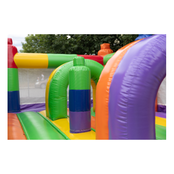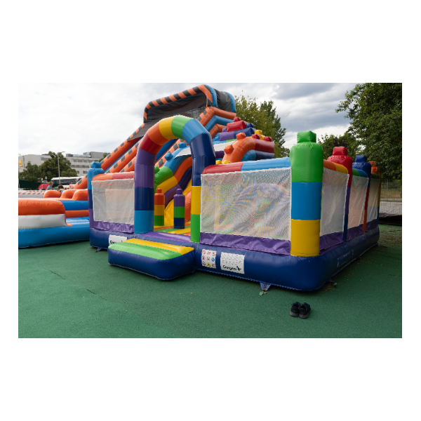 Odkryj świat pełen barw i kształtów z naszym dmuchanym placem zabaw w rozmiarze 8x6, który przypomina kolorowe klocki. Idealne miejsce do zabawy, które stymuluje kreatywność i zdolności logiczne dzieci. Jego jasne, żywe kolory i modułowa struktura zachęcają do aktywnego spędzania czasu i są świetnym sposobem na rozwijanie umiejętności motorycznych. Zapewnij swoim dzieciom godziny kreatywnej zabawy w bezpiecznym i atrakcyjnym środowisku.