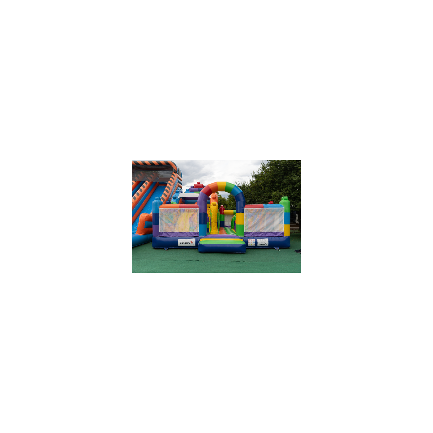 Jak wszystkie nasze dmuchane atrakcje, produkt jest wykonany z wysokiej jakości materiałów, w tym przypadku z PVC nowej generacji o dużej wytrzymałości na rozerwanie. Dmuchany plac zabaw 8x6 w motywie kolorowych klocków ma 8 m x 6 m x 4,9 m (długość, szerokość i wysokość). Spełnia normę bezpieczeństwa PN-EN 14960 dla nadmuchiwanego sprzętu do zabawy. Do dmuchańca zalecamy zastosowanie dmuchaw, które dodajemy w zestawie. Podobnie jak większość naszych atrakcji, dmuchaniec jest objęty dwuletnią gwarancją. W Gangaru (wcześniej GunGan) dbamy o to, żebyś miał jak najmniej na głowie - w pakiecie z dmuchańcem zapewniamy pełny zestaw akcesoriów potrzebnych do przymocowania atrakcji (liny, śledzie). Dmuchaniec został sprawdzony pod kątem bezpieczeństwa przez niezależnego rzeczoznawcę.