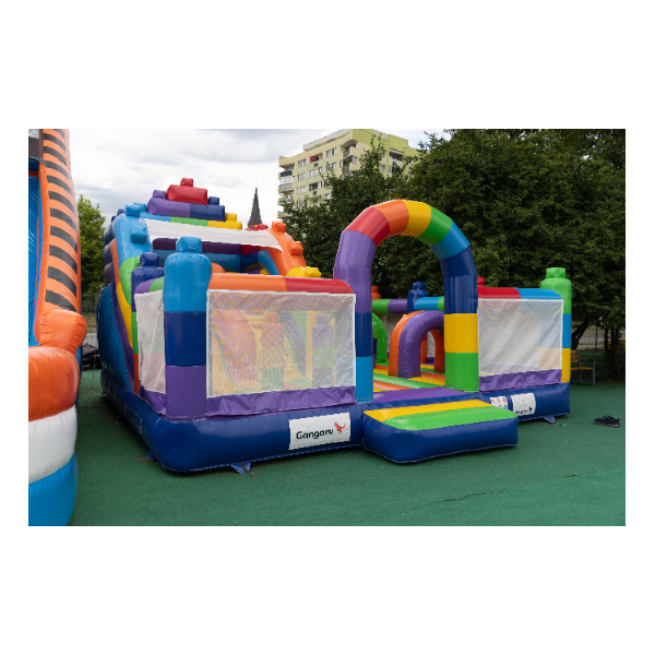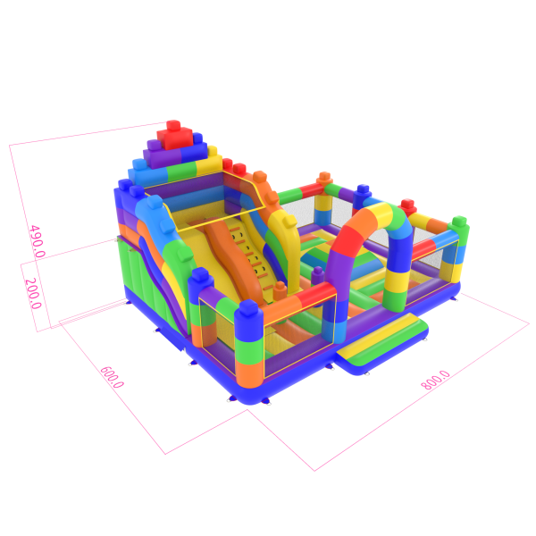 Dmuchany plac zabaw 8x6 w motywie kolorowych klocków dedykowany jest głównie dla dzieci, które poszukują przygody w czasie zabaw z przyjaciółmi i rówieśnikami. Dmuchany plac zabaw jest ogrodzony i miękki, a dzięki temu całkowicie bezpieczny podczas użytkowania. Zwykle składa się z dużej oraz małej zjeżdżalni, dlatego dzieci w różnym wieku będą się na nim świetnie bawić.Dmuchany plac zabaw 8x6 w motywie kolorowych klocków bardzo dobrze sprawdzi się na piknikach rodzinnych, imprezach integracyjnych i pracowniczych czy eventach innego rodzaju – w plenerze i nie tylko. Dmuchane place zabaw są doskonałą alternatywą dla większych i bardziej wymagających dmuchańców. Szczególnie polecamy tę atrakcję w przypadku rozpoczęcia biznesu.