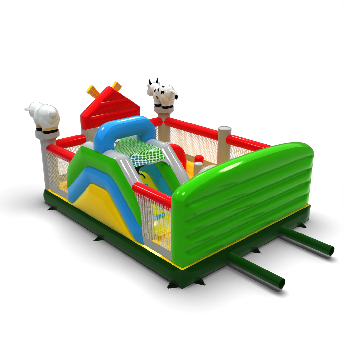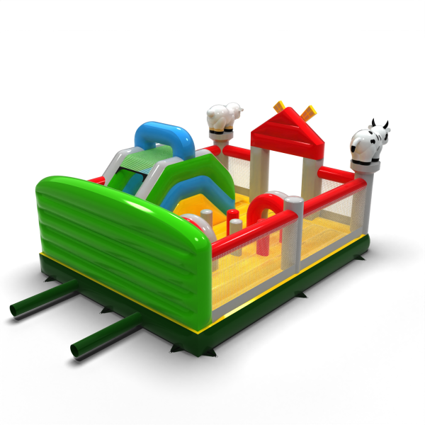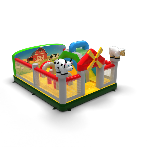 Dmuchany plac zabaw 6x5 w motywie farmerskim dedykowany jest głównie dla dzieci, które poszukują przygody w czasie zabaw z przyjaciółmi i rówieśnikami. Dmuchany plac zabaw jest ogrodzony i miękki, a dzięki temu całkowicie bezpieczny podczas użytkowania. Zwykle składa się z dużej oraz małej zjeżdżalni, dlatego dzieci w różnym wieku będą się na nim świetnie bawić.Dmuchany plac zabaw 6x5 w motywie farmerskim bardzo dobrze sprawdzi się na piknikach rodzinnych, imprezach integracyjnych i pracowniczych czy eventach innego rodzaju – w plenerze i nie tylko. Dmuchane place zabaw są doskonałą alternatywą dla większych i bardziej wymagających dmuchańców. Szczególnie polecamy tę atrakcję w przypadku rozpoczęcia biznesu.