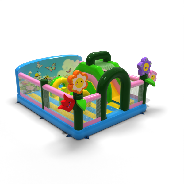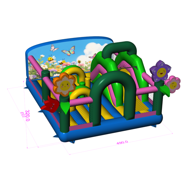 Dmuchany plac zabaw 6x5 w motywie wiosennym dedykowany jest głównie dla dzieci, które poszukują przygody w czasie zabaw z przyjaciółmi i rówieśnikami. Dmuchany plac zabaw jest ogrodzony i miękki, a dzięki temu całkowicie bezpieczny podczas użytkowania. Zwykle składa się z dużej oraz małej zjeżdżalni, dlatego dzieci w różnym wieku będą się na nim świetnie bawić.Dmuchany plac zabaw 6x5 w motywie wiosennym bardzo dobrze sprawdzi się na piknikach rodzinnych, imprezach integracyjnych i pracowniczych czy eventach innego rodzaju – w plenerze i nie tylko. Dmuchane place zabaw są doskonałą alternatywą dla większych i bardziej wymagających dmuchańców. Szczególnie polecamy tę atrakcję w przypadku rozpoczęcia biznesu.