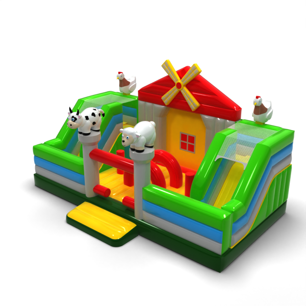 Dmuchany plac zabaw - farma dedykowany jest głównie dla dzieci, które poszukują przygody w czasie zabaw z przyjaciółmi i rówieśnikami. Dmuchany plac zabaw jest ogrodzony i miękki, a dzięki temu całkowicie bezpieczny podczas użytkowania. Zwykle składa się z dużej oraz małej zjeżdżalni, dlatego dzieci w różnym wieku będą się na nim świetnie bawić.Dmuchany plac zabaw - farma bardzo dobrze sprawdzi się na piknikach rodzinnych, imprezach integracyjnych i pracowniczych czy eventach innego rodzaju – w plenerze i nie tylko. Dmuchane place zabaw są doskonałą alternatywą dla większych i bardziej wymagających dmuchańców. Szczególnie polecamy tę atrakcję w przypadku rozpoczęcia biznesu.