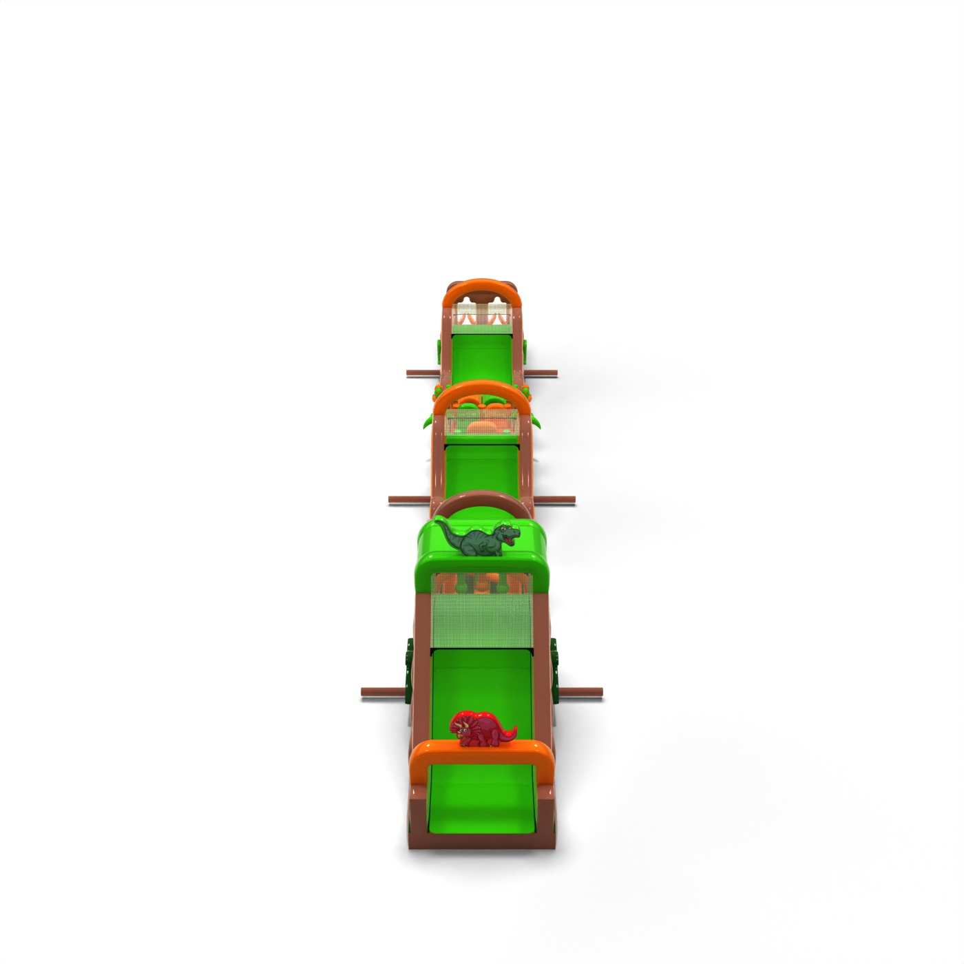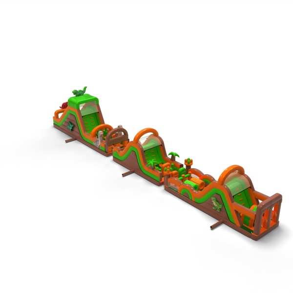 Monumentalny tor w dinozaurowym klimacie tworzy spektakularną strefę zabawy, która staje się centralnym punktem każdego wydarzenia. Bardzo długa i zróżnicowana trasa przeszkód pozwala na intensywną rywalizację, wysoką rotację uczestników i długie utrzymanie zainteresowania atrakcją. To profesjonalna konstrukcja przygotowana do pracy na dużych eventach, gdzie liczy się stabilność, trwałość i bezproblemowa obsługa. Tego typu tor jest mocnym produktem inwestycyjnym, często wybieranym przez klientów szukających atrakcji o dużej skali i wysokim potencjale zarobkowym. Najlepiej sprawdzi się na imprezach masowych, festiwalach i dużych realizacjach plenerowych, w których liczy się skala, widowiskowość i pewna przepustowość przez cały dzień.