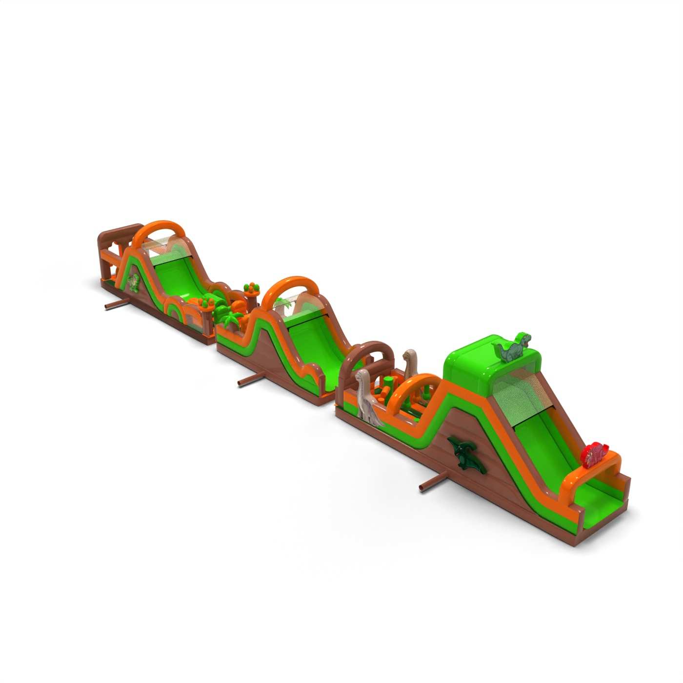 Dmuchany tor przeszkód dino - 30m dedykowany jest głównie dla dzieci, które poszukują przygody w czasie zabaw z przyjaciółmi i rówieśnikami. Dmuchany plac zabaw jest ogrodzony i miękki, a dzięki temu całkowicie bezpieczny podczas użytkowania. Zwykle składa się z dużej oraz małej zjeżdżalni, dlatego dzieci w różnym wieku będą się na nim świetnie bawić.Dmuchany tor przeszkód dino - 30m bardzo dobrze sprawdzi się na piknikach rodzinnych, imprezach integracyjnych i pracowniczych czy eventach innego rodzaju – w plenerze i nie tylko. Dmuchane place zabaw są doskonałą alternatywą dla większych i bardziej wymagających dmuchańców. Szczególnie polecamy tę atrakcję w przypadku rozpoczęcia biznesu.