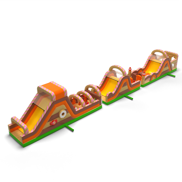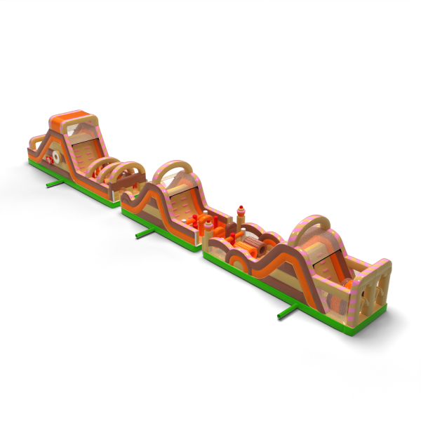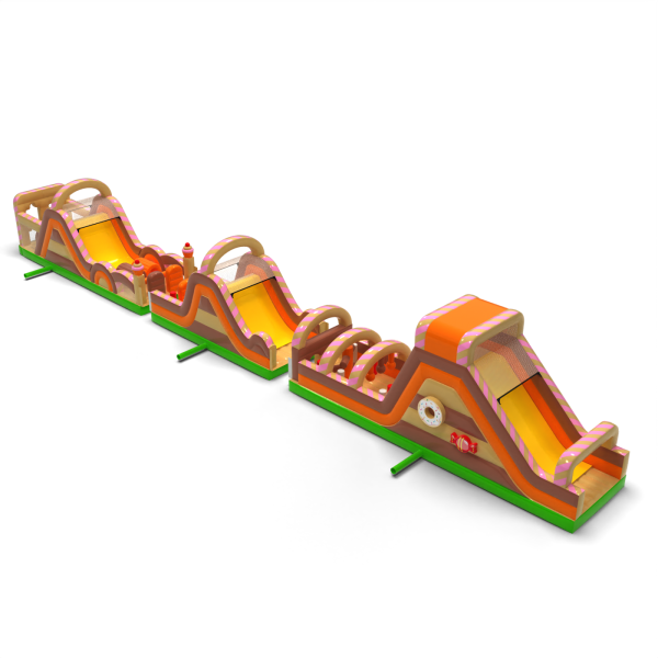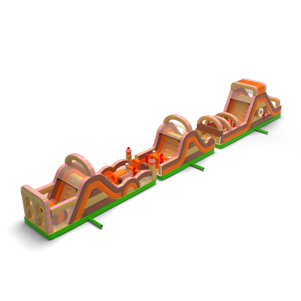 Dmuchany tor przeszkód Cukierki - 30m dedykowany jest niemal dla każdego, kto lubi dobrą zabawę połączoną z rywalizacją. Dmuchany tor przeszkód został zaprojektowany z myślą głównie o młodzieży i dorosłych, ale również jest przeznaczony dla dzieci od 6-go roku życia. Niemal każdy odnajdzie w tej atrakcji elementy, które sprawią wiele radości w czasie zabawy. Produkt ten dedykujemy wszystkim tym, którzy chcą odnaleźć w sobie ducha rywalizacji w czasie wielogodzinnych zabaw w plenerze. Atrakcje z tej serii mogą zawierać w sobie wiele elementów o zróżnicowanym stopniu trudności do pokonania. Wspinaczka po ścianie, szybki ślizg, by wreszcie przeczołgać się między wystającymi elementami, które utrudniają jak najszybsze pokonanie trasy.