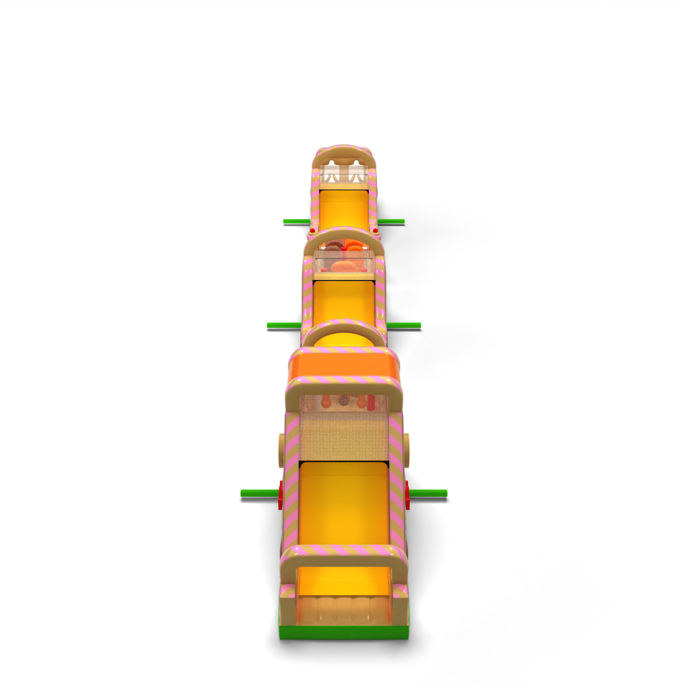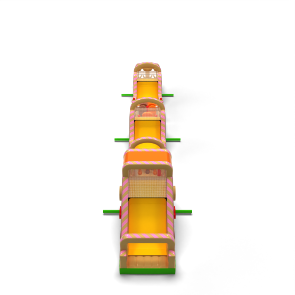 Kolorowy tor przeszkód w motywie cukierków o długości 30 m to gwarancja radości i niezapomnianej zabawy! Świetnie nadaje się na duże imprezy plenerowe, gdzie dzieci i dorośli mogą rywalizować i bawić się w bezpiecznym otoczeniu. Przyciągnij uwagę już teraz!