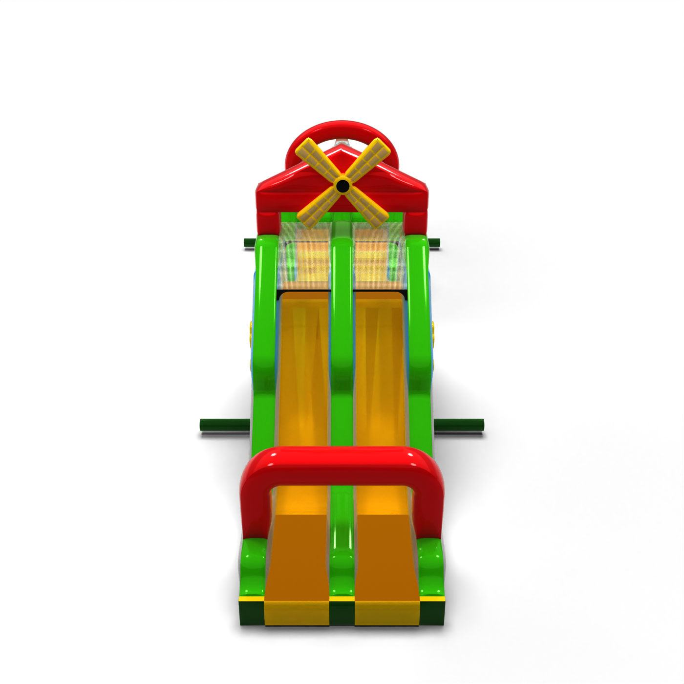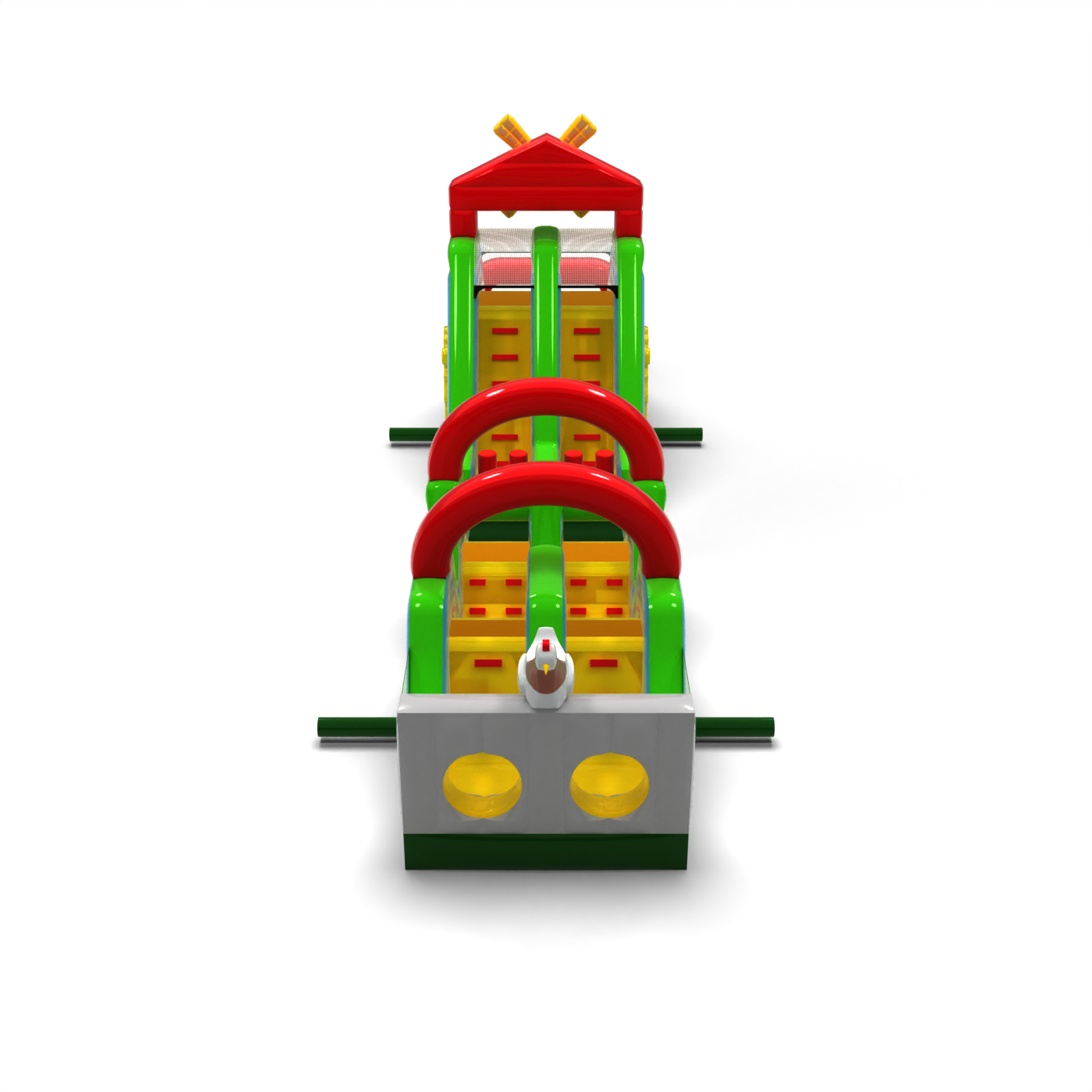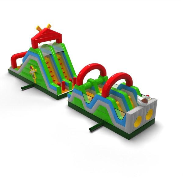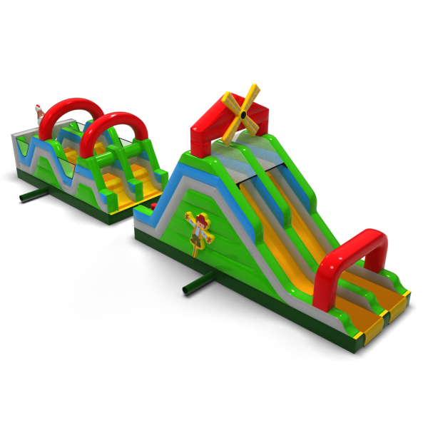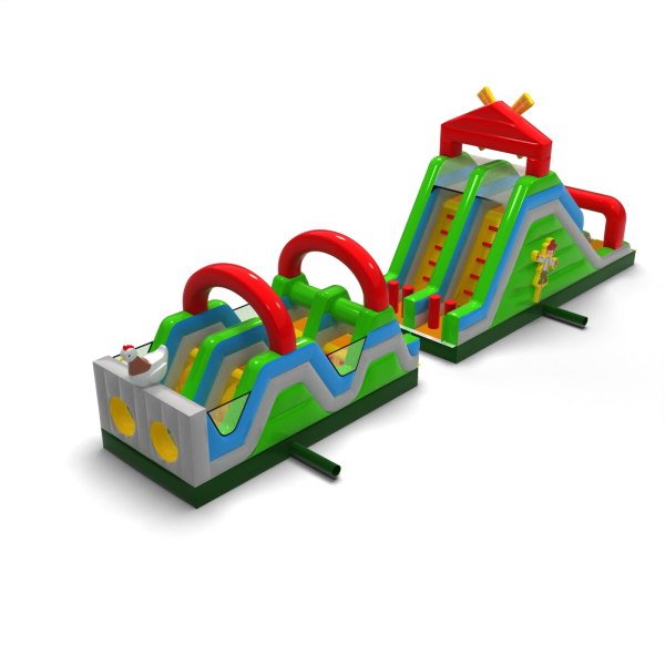 Dmuchany tor przeszkód Farmerski - 15m dedykowany jest niemal dla każdego, kto lubi dobrą zabawę połączoną z rywalizacją. Dmuchany tor przeszkód został zaprojektowany z myślą głównie o młodzieży i dorosłych, ale również jest przeznaczony dla dzieci od 6-go roku życia. Niemal każdy odnajdzie w tej atrakcji elementy, które sprawią wiele radości w czasie zabawy. Produkt ten dedykujemy wszystkim tym, którzy chcą odnaleźć w sobie ducha rywalizacji w czasie wielogodzinnych zabaw w plenerze. Atrakcje z tej serii mogą zawierać w sobie wiele elementów o zróżnicowanym stopniu trudności do pokonania. Wspinaczka po ścianie, szybki ślizg, by wreszcie przeczołgać się między wystającymi elementami, które utrudniają jak najszybsze pokonanie trasy.