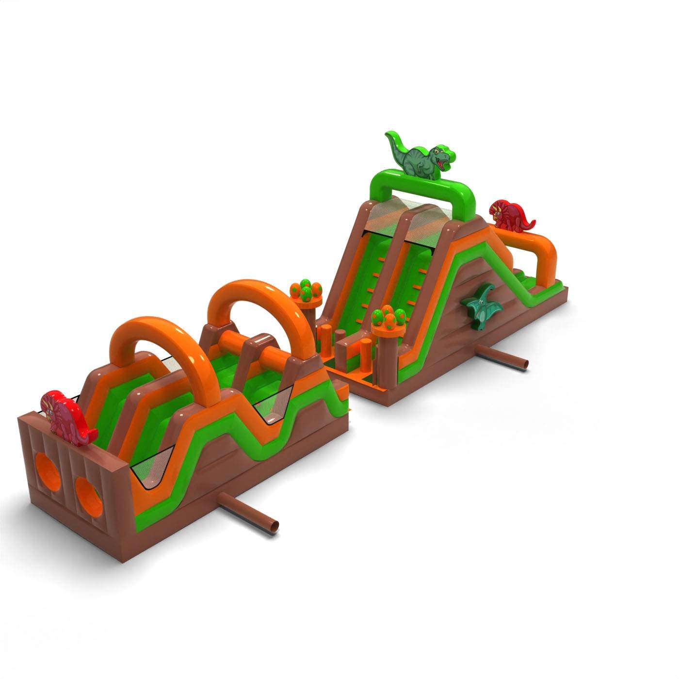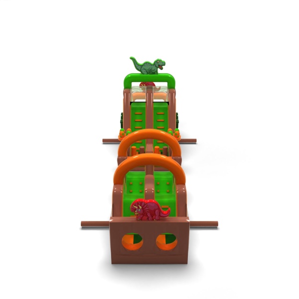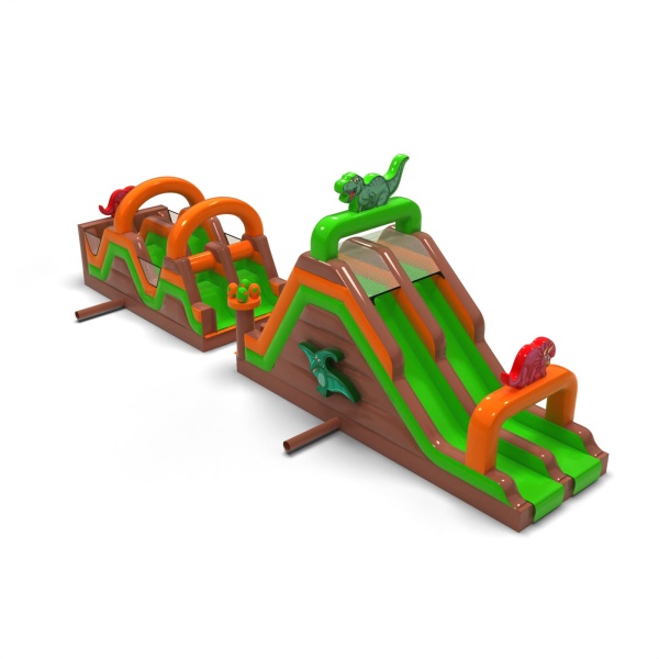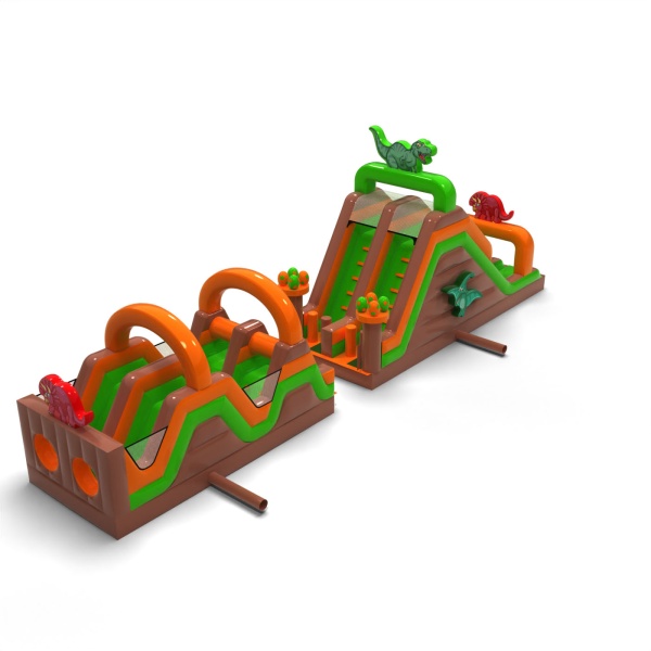 Dmuchany tor przeszkód dino - 15m dedykowany jest niemal dla każdego, kto lubi dobrą zabawę połączoną z rywalizacją. Dmuchany tor przeszkód został zaprojektowany z myślą głównie o młodzieży i dorosłych, ale również jest przeznaczony dla dzieci od 6-go roku życia. Niemal każdy odnajdzie w tej atrakcji elementy, które sprawią wiele radości w czasie zabawy. Produkt ten dedykujemy wszystkim tym, którzy chcą odnaleźć w sobie ducha rywalizacji w czasie wielogodzinnych zabaw w plenerze. Atrakcje z tej serii mogą zawierać w sobie wiele elementów o zróżnicowanym stopniu trudności do pokonania. Wspinaczka po ścianie, szybki ślizg, by wreszcie przeczołgać się między wystającymi elementami, które utrudniają jak najszybsze pokonanie trasy.