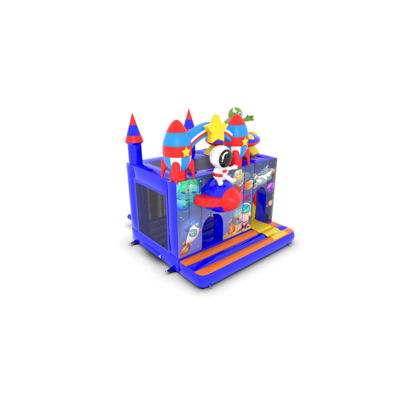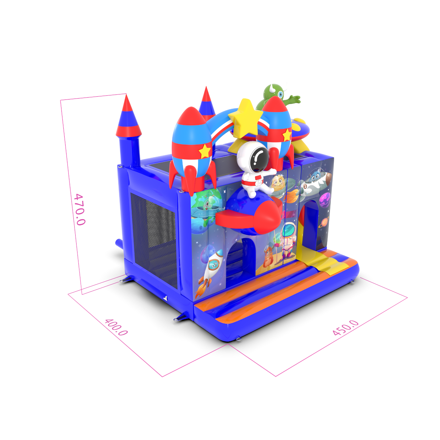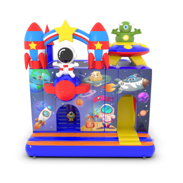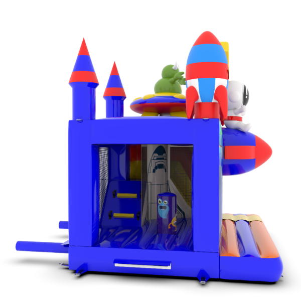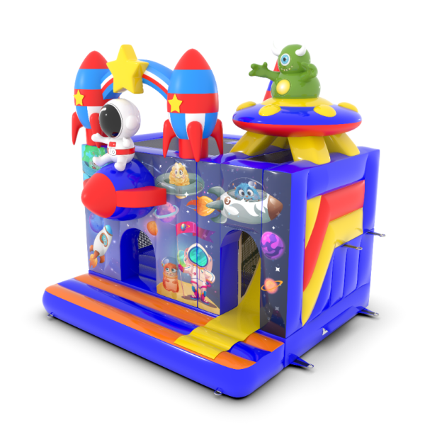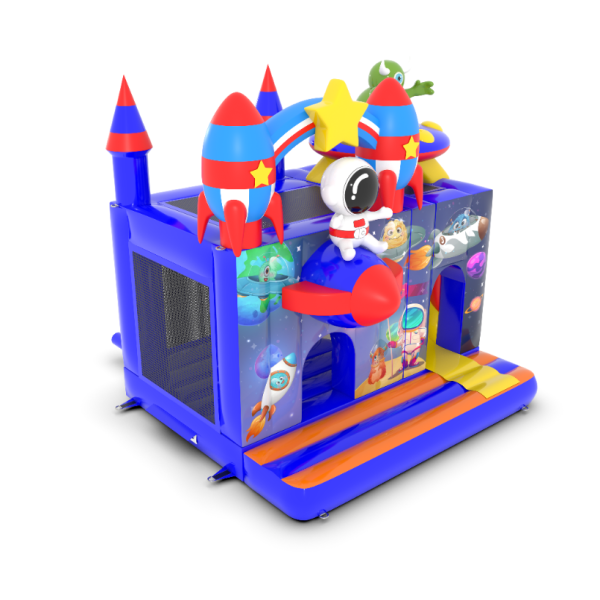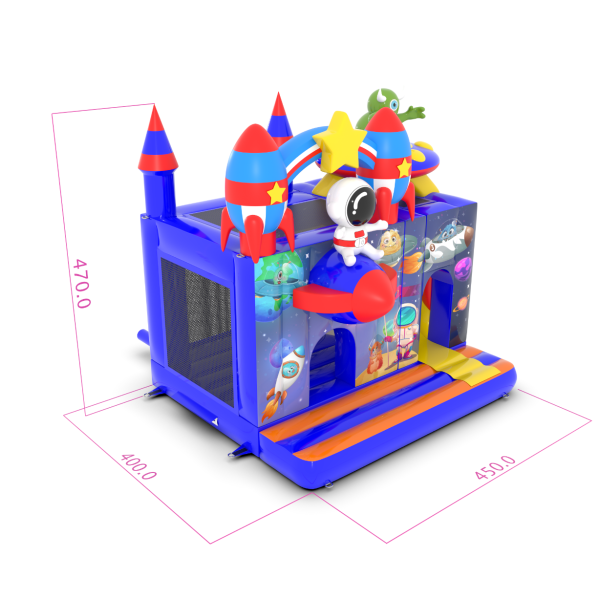 Dmuchany zamek 4,5x4 m w motywie kosmosu to idealna atrakcja dla najmłodszych, którzy marzą o kosmicznych przygodach! Fantastyczne rakiety, gwiazdy i astronauta tworzą niezapomniany klimat. To świetny wybór na eventy plenerowe, festyny i rodzinne pikniki. Zobacz więcej na gangaru.pl!