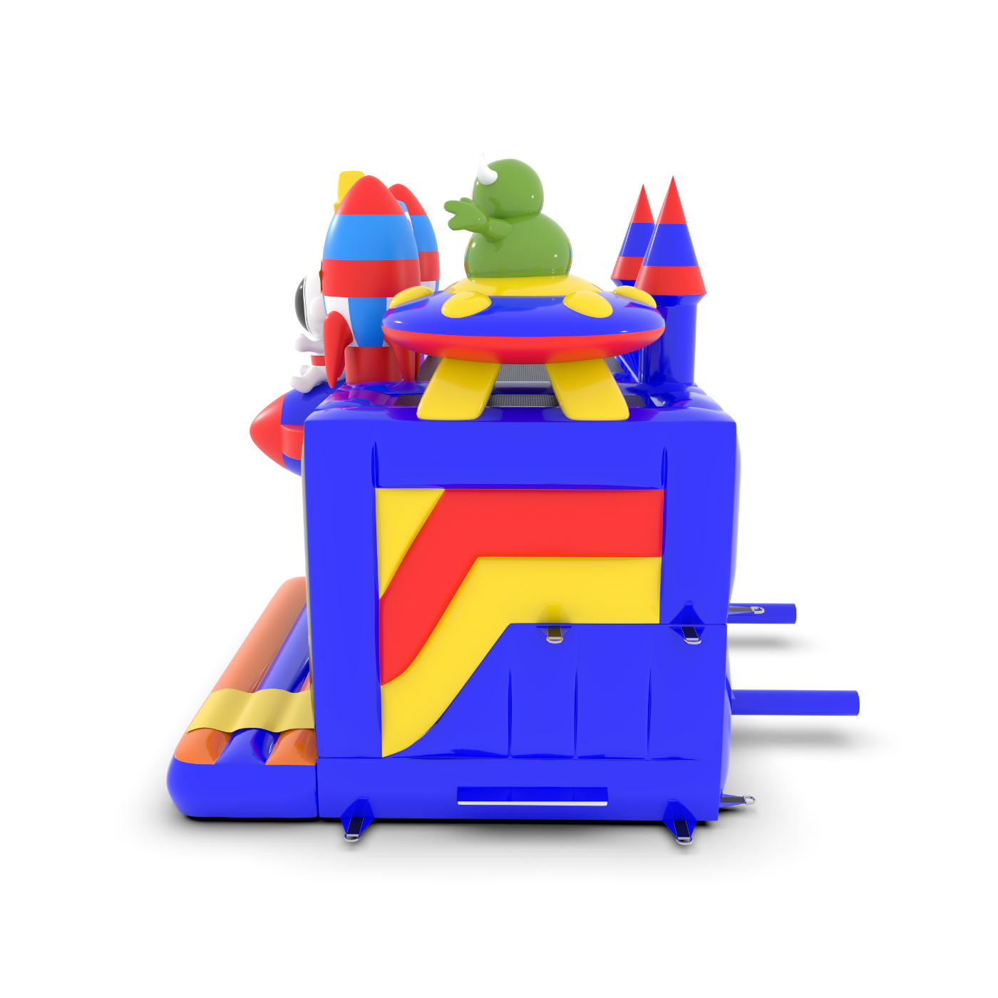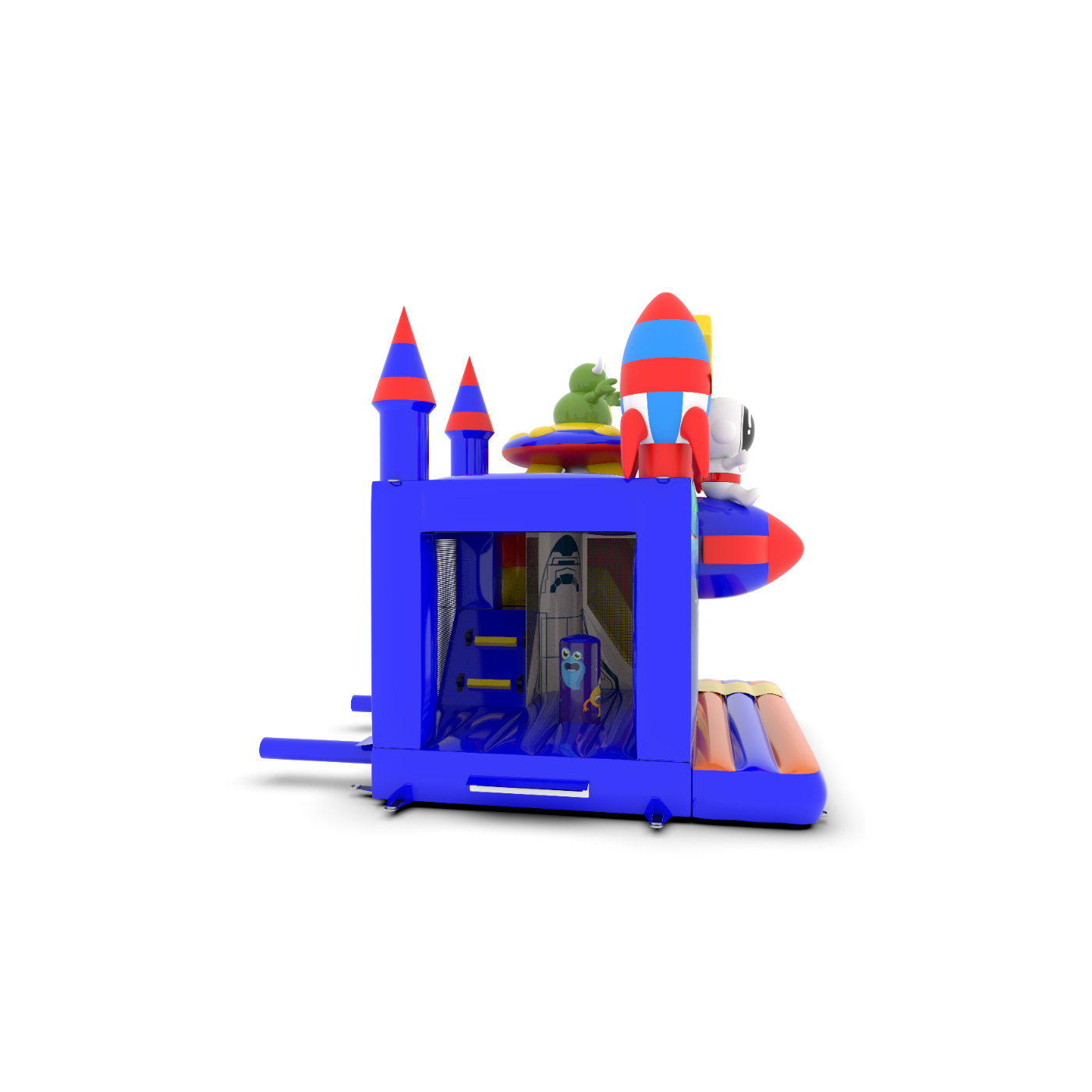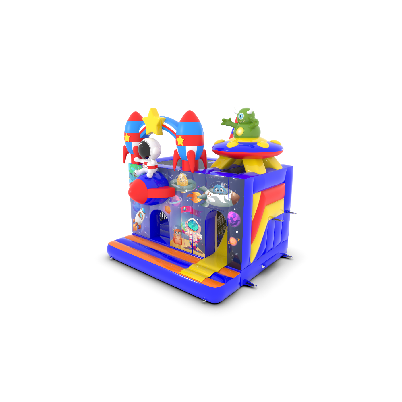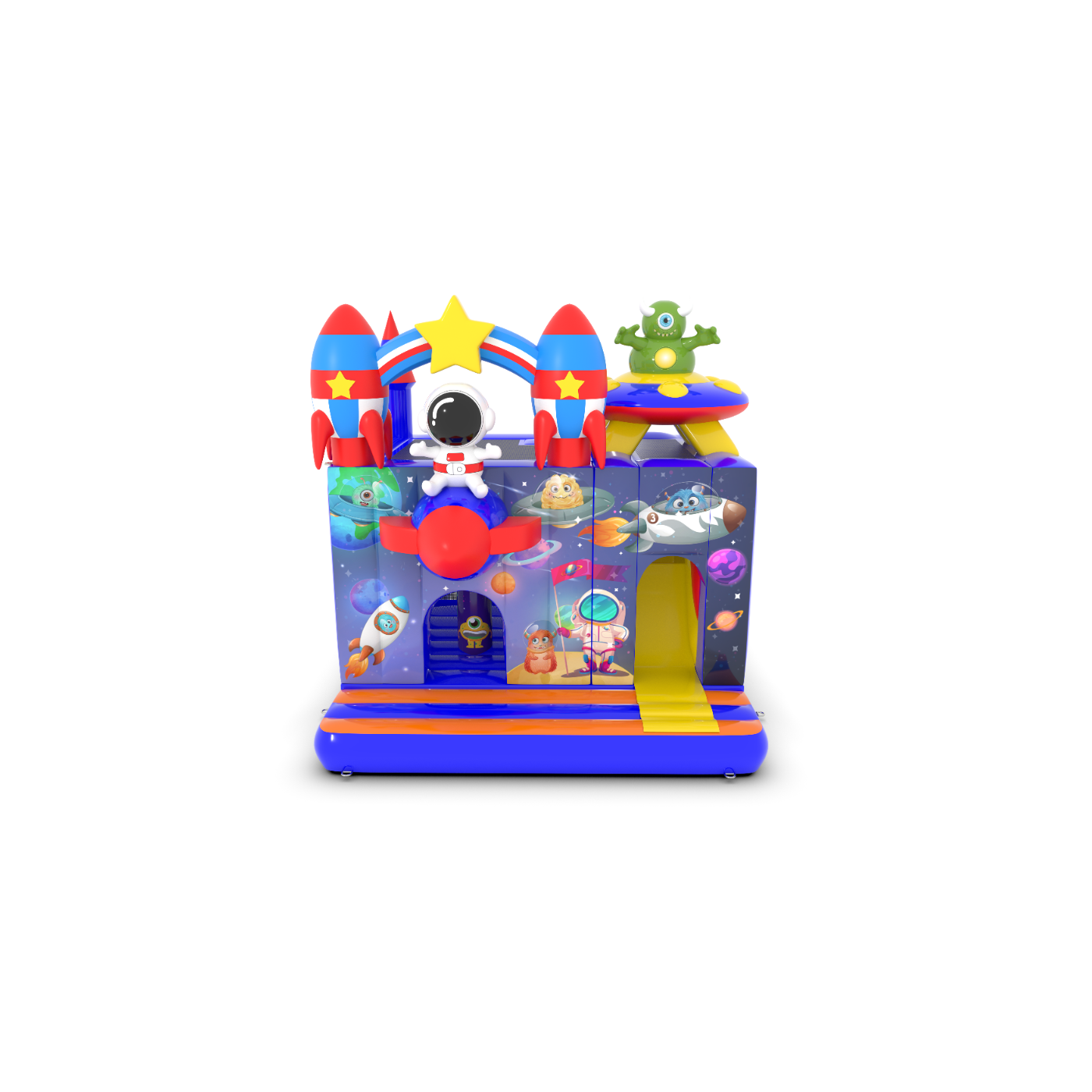 Dmuchany zamek 4,5x4 m w motywie kosmosu to idealna atrakcja dla najmłodszych, którzy marzą o kosmicznych przygodach! Fantastyczne rakiety, gwiazdy i astronauta tworzą niezapomniany klimat. To świetny wybór na eventy plenerowe, festyny i rodzinne pikniki. Zobacz więcej na gangaru.pl!
