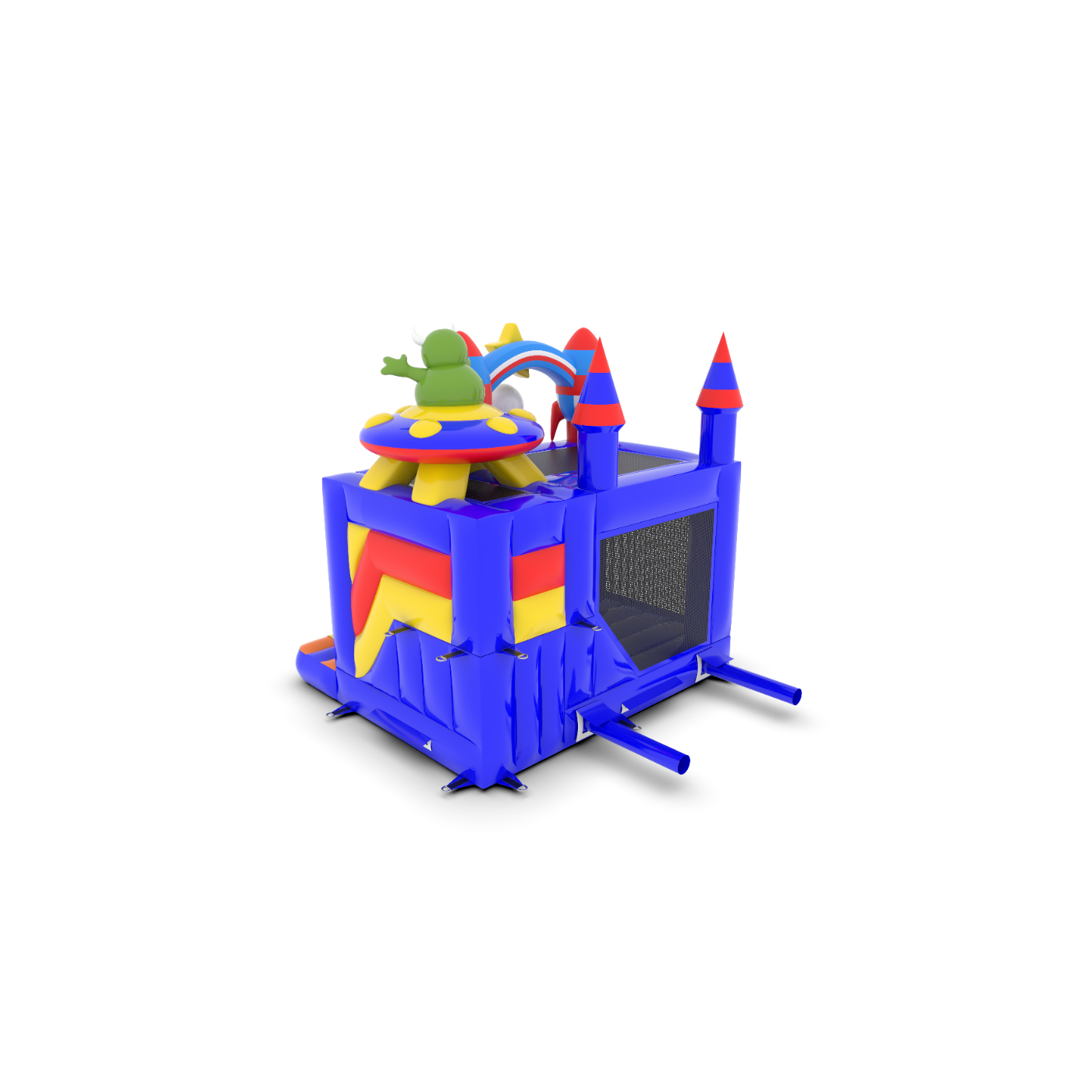 Dmuchany zamek 4,5x4 w motywie kosmosu to atrakcja dla wszystkich wielbicieli radosnych podskoków. Dzieci świetnie się na nim bawią – skaczą i wcielają się w role dostosowane do motywu atrakcji. Dmuchany zamek 4,5x4 w motywie kosmosu to atrakcja stworzona z myślą nie tylko o najmłodszych dzieciach. Dmuchańce z tej kategorii są zwykle bogato zdobione, zawierają wiele elementów, które zachęcają do podjęcia skocznej zabawy na świeżym powietrzu. Dmuchane zamki mogą tworzyć fantastyczny świat przeżyć podczas radosnych skoków z przyjaciółmi i rówieśnikami. Zamek dmuchany można łączyć z innymi produktami z naszej oferty, tworząc przy tym przepiękny i bajkowy świat przeżyć w czasie wielogodzinnych i radosnych podskoków.