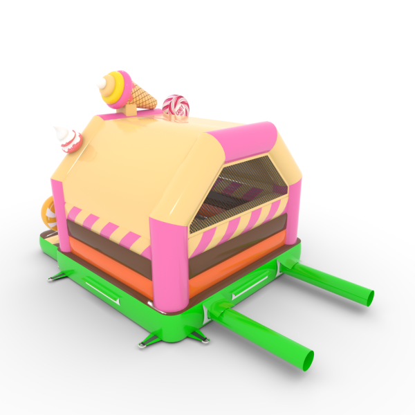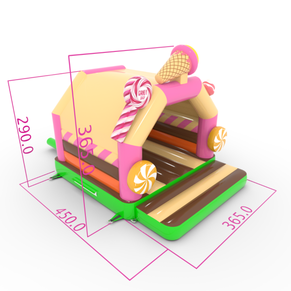 Dmuchany zamek 4,5x3,6 m w słodkim motywie cukierkowym to idealna przestrzeń do zabawy pełnej kolorów! Wyróżnia się wyjątkowym designem z większą liczbą dekoracji, takich jak lizaki i lody w różnych kształtach, które przyciągają uwagę najmłodszych. Doskonały na eventy, pikniki i imprezy rodzinne. Odwiedź gangaru.pl, aby poznać szczegóły!