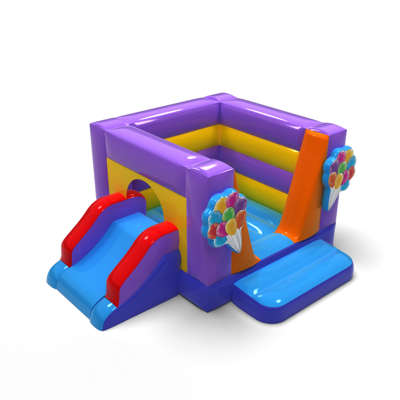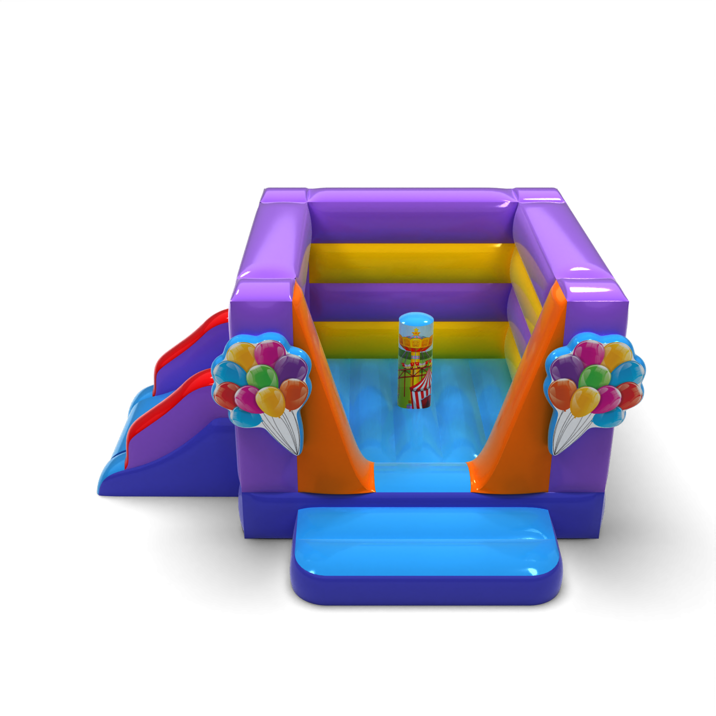 Mały skakaniec zamknięty ze zjeżdżalnią – w motywie wesołego miasteczka