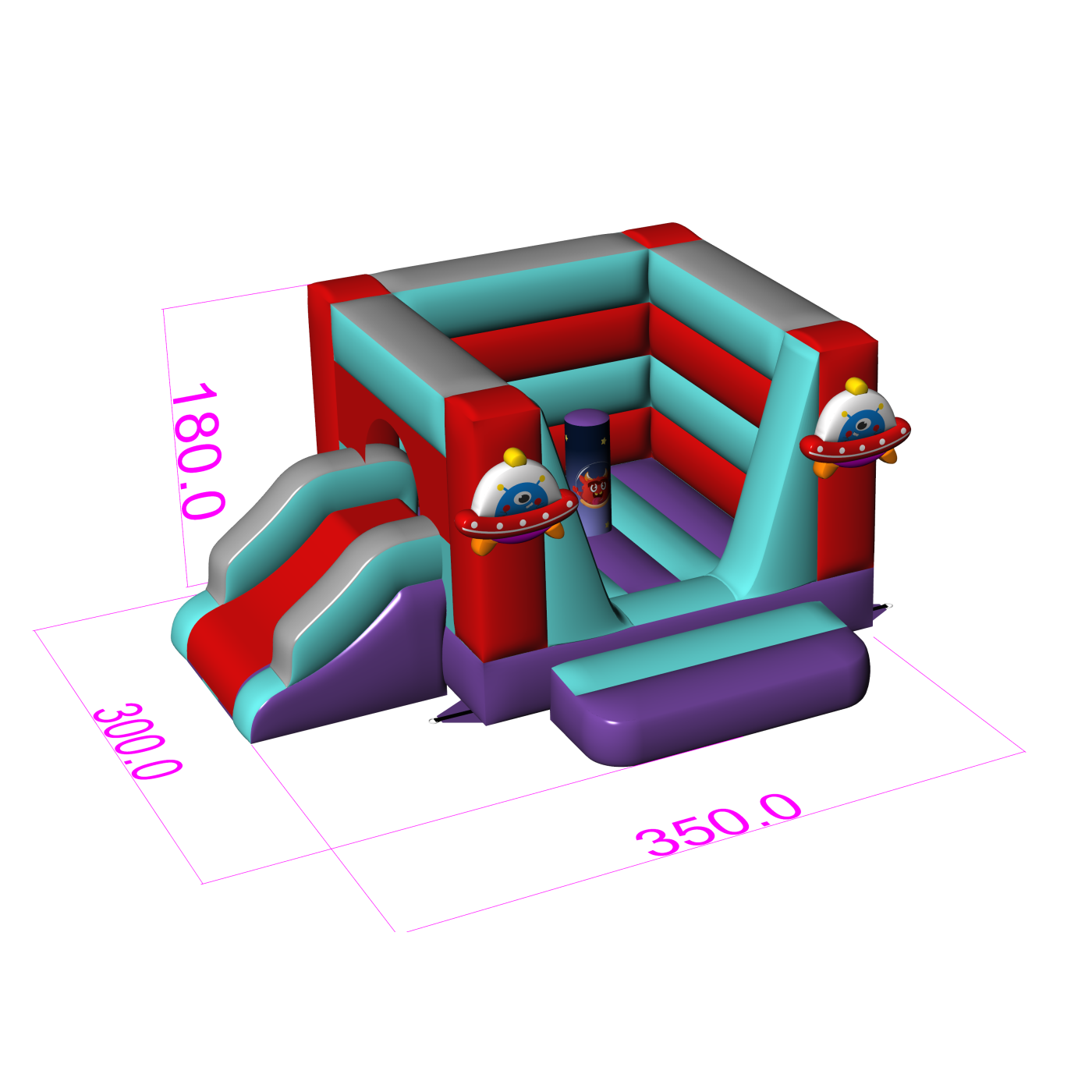 Mały skakaniec zamknięty ze zjeżdżalnią – w motywie kosmicznym to atrakcja dla wszystkich wielbicieli radosnych podskoków. Dzieci świetnie się na nim bawią – skaczą i wcielają się w role dostosowane do motywu atrakcji. Mały skakaniec zamknięty ze zjeżdżalnią – w motywie kosmicznym to atrakcja stworzona z myślą nie tylko o najmłodszych dzieciach. Dmuchańce z tej kategorii są zwykle bogato zdobione, zawierają wiele elementów, które zachęcają do podjęcia skocznej zabawy na świeżym powietrzu. Dmuchane zamki mogą tworzyć fantastyczny świat przeżyć podczas radosnych skoków z przyjaciółmi i rówieśnikami. Zamek dmuchany można łączyć z innymi produktami z naszej oferty, tworząc przy tym przepiękny i bajkowy świat przeżyć w czasie wielogodzinnych i radosnych podskoków.
