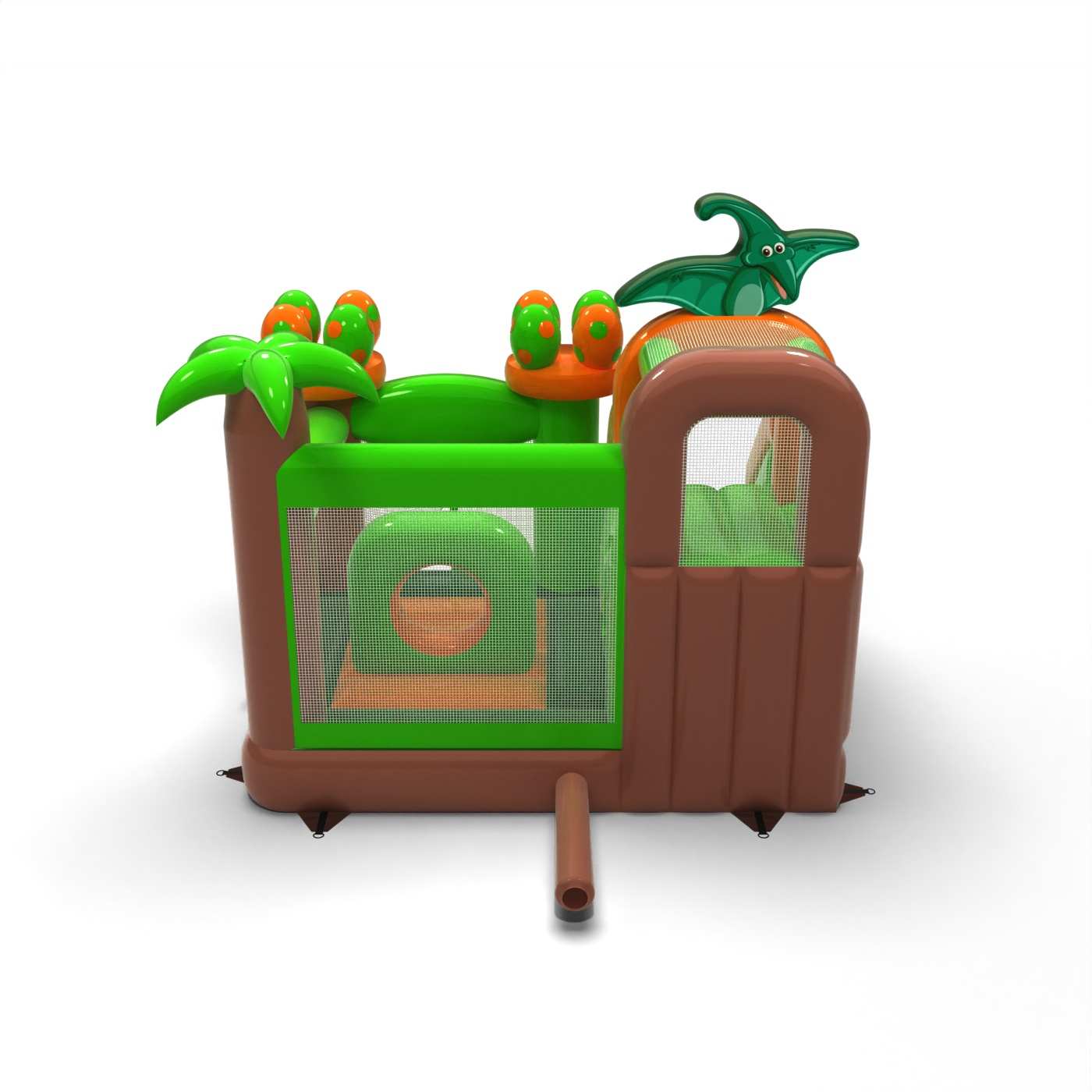Dmuchany zamek dino combo to atrakcja dla wszystkich wielbicieli radosnych podskoków. Dzieci świetnie się na nim bawią – skaczą i wcielają się w role dostosowane do motywu atrakcji. Dmuchany zamek dino combo to atrakcja stworzona z myślą nie tylko o najmłodszych dzieciach. Dmuchańce z tej kategorii są zwykle bogato zdobione, zawierają wiele elementów, które zachęcają do podjęcia skocznej zabawy na świeżym powietrzu. Dmuchane zamki mogą tworzyć fantastyczny świat przeżyć podczas radosnych skoków z przyjaciółmi i rówieśnikami. Zamek dmuchany można łączyć z innymi produktami z naszej oferty, tworząc przy tym przepiękny i bajkowy świat przeżyć w czasie wielogodzinnych i radosnych podskoków.