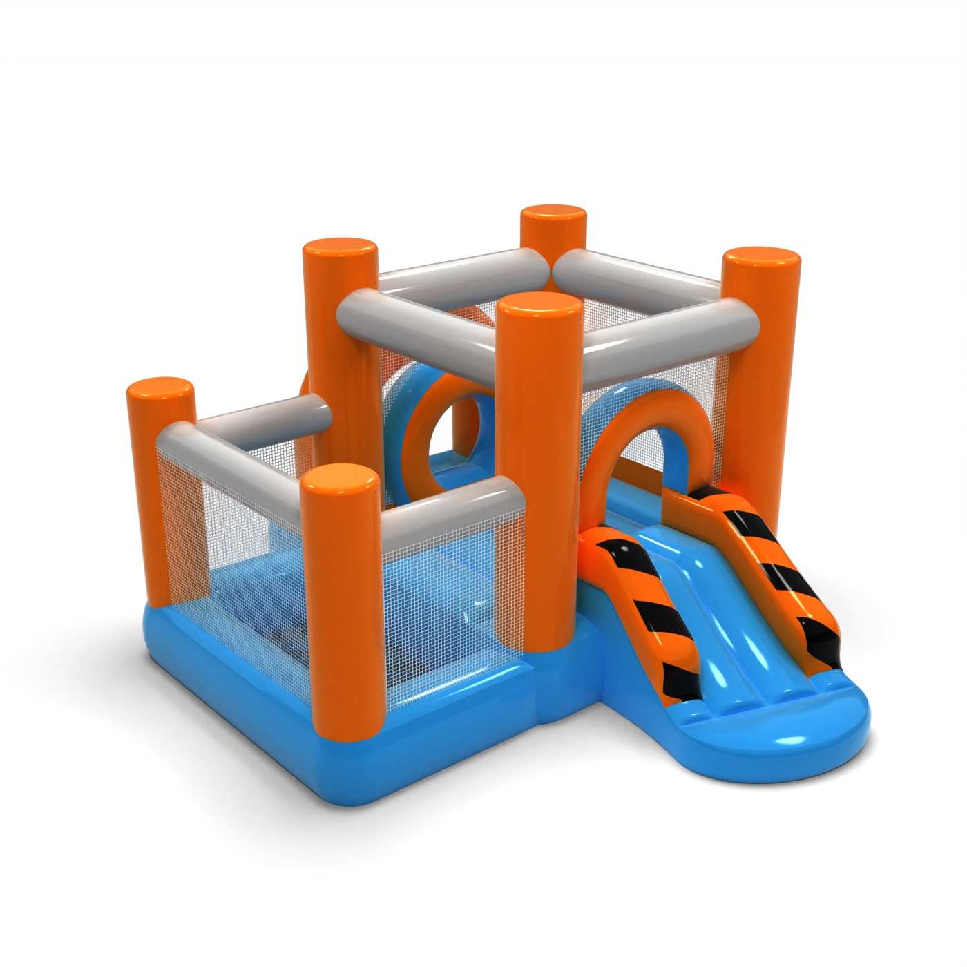 Neutralna, klasyczna stylistyka sprawia, że atrakcja pasuje do wielu typów wydarzeń i przestrzeni eventowych. Połączenie strefy skakania z suchym basenem daje najmłodszym dzieciom bezpieczną i komfortową formę aktywnej zabawy. Prosta, czytelna forma ułatwia organizację strefy dziecięcej i pozwala szybko rozpocząć zabawę bez dodatkowych animacji. Kompaktowy rozmiar czyni ten model praktycznym rozwiązaniem na krótkie realizacje i mniejsze eventy. Atrakcja dobrze sprawdzi się na piknikach rodzinnych, wydarzeniach przedszkolnych oraz imprezach w plenerze i pod dachem.