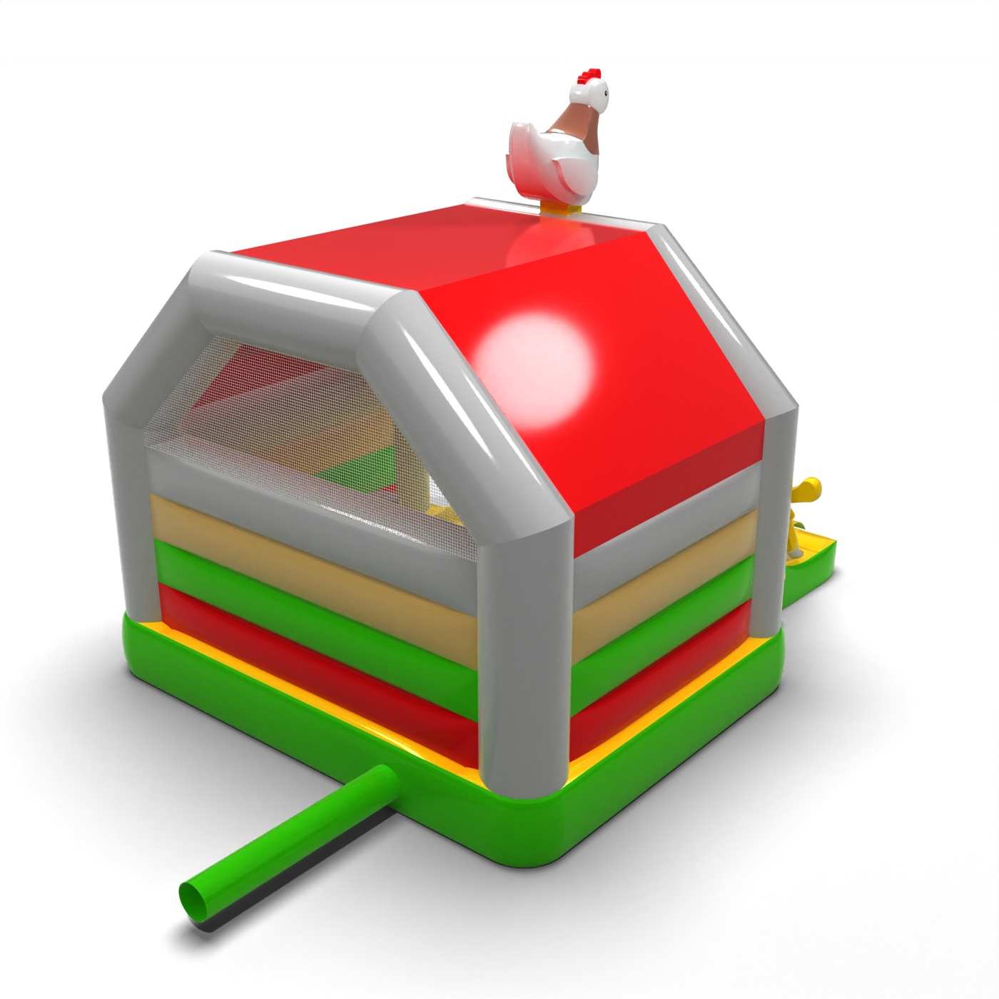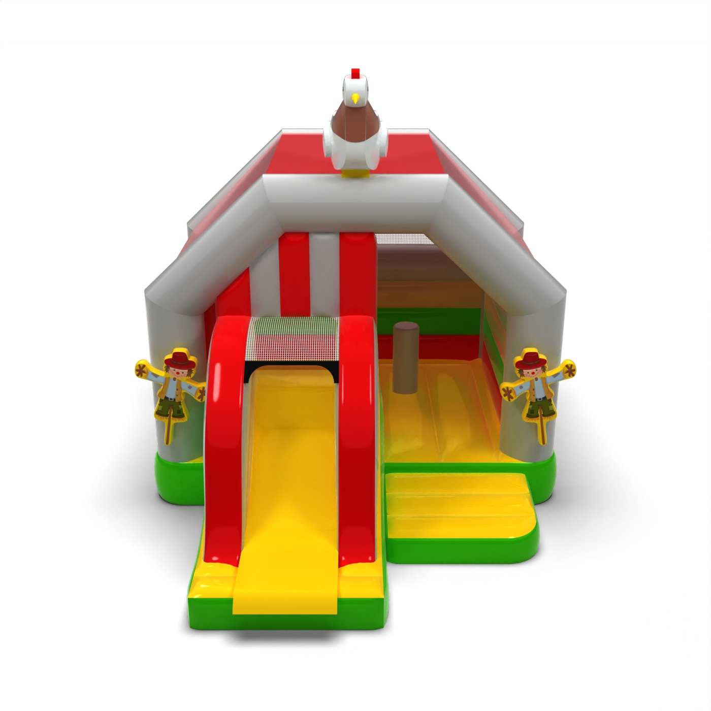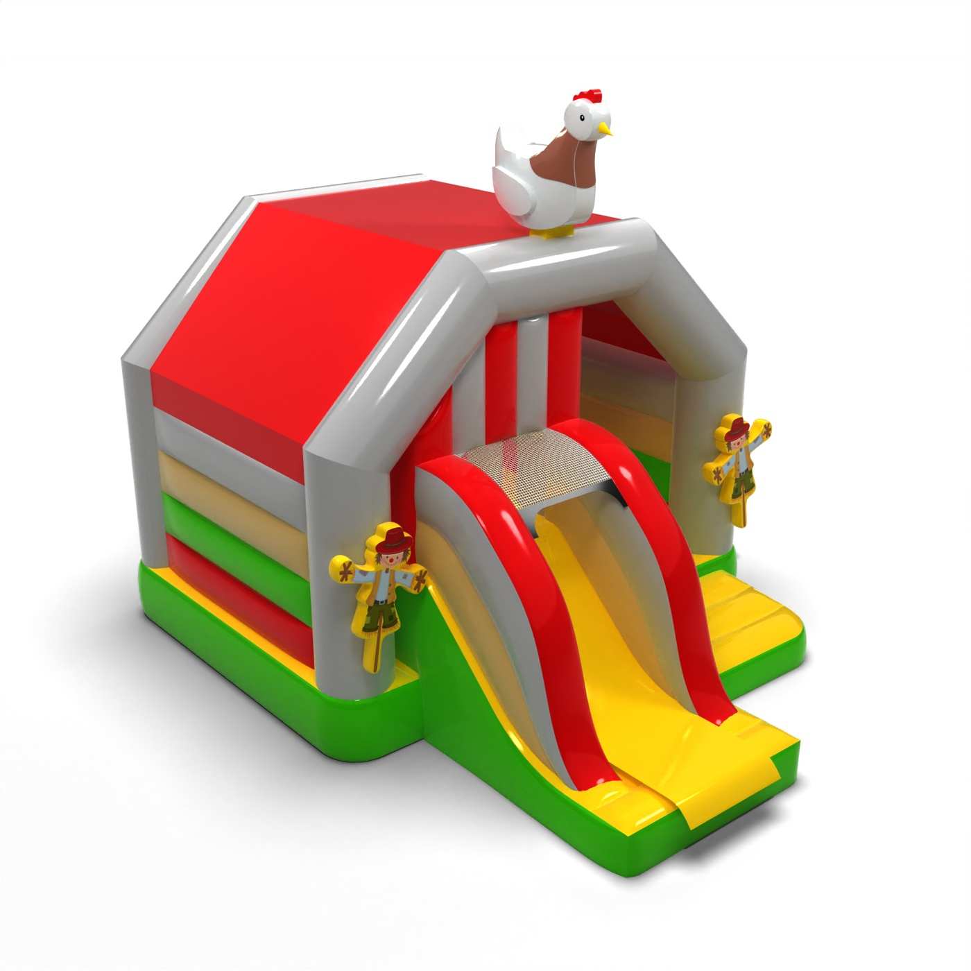 Domek na farmie - dmuchaniec ze zjeżdżalnią to atrakcja dla wszystkich wielbicieli radosnych podskoków. Dzieci świetnie się na nim bawią – skaczą i wcielają się w role dostosowane do motywu atrakcji. Domek na farmie - dmuchaniec ze zjeżdżalnią to atrakcja stworzona z myślą nie tylko o najmłodszych dzieciach. Dmuchańce z tej kategorii są zwykle bogato zdobione, zawierają wiele elementów, które zachęcają do podjęcia skocznej zabawy na świeżym powietrzu. Dmuchane zamki mogą tworzyć fantastyczny świat przeżyć podczas radosnych skoków z przyjaciółmi i rówieśnikami. Zamek dmuchany można łączyć z innymi produktami z naszej oferty, tworząc przy tym przepiękny i bajkowy świat przeżyć w czasie wielogodzinnych i radosnych podskoków.