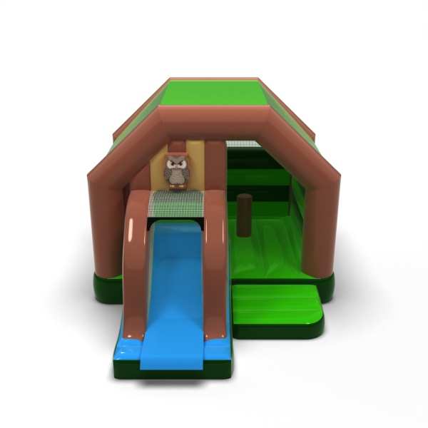 Forma inspirowana leśną scenerią tworzy wyraźnie wydzieloną, tematyczną strefę zabawy o spokojnym, naturalnym charakterze. Połączenie przestrzeni do skakania i zjazdu zachęca dzieci do ruchu i dłuższego korzystania z atrakcji. Leśna stylistyka wprowadza atmosferę bliskości natury i dobrze współgra z plenerowymi wydarzeniami rodzinnymi. To propozycja dla organizatorów, którzy chcą stworzyć spójną, przyjazną strefę dziecięcą bez intensywnej, festynowej dynamiki. Atrakcja świetnie odnajdzie się na piknikach, festynach i animacjach odbywających się na świeżym powietrzu.
