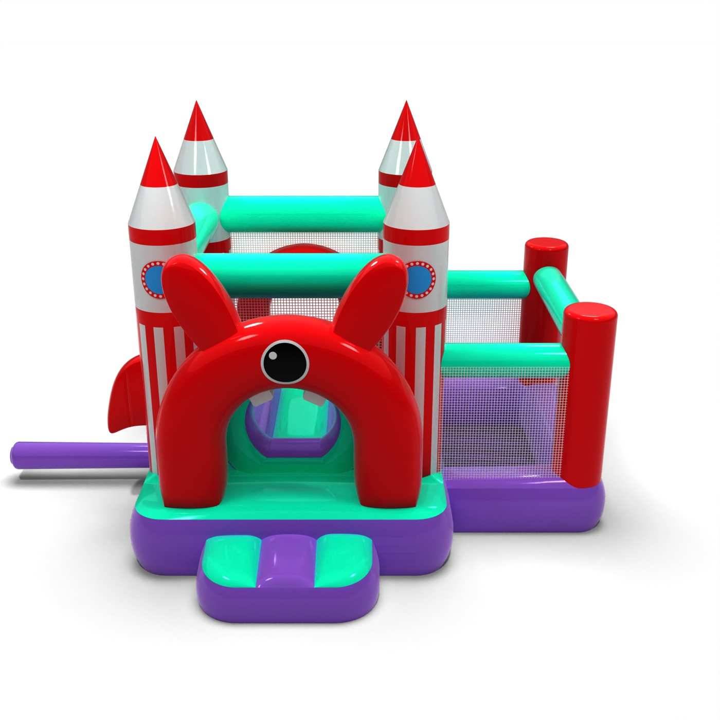 Kosmiczna stylistyka inspirowana podróżą w nieznane tworzy atrakcyjną i przyjazną przestrzeń zabawy dla dzieci. Połączenie strefy skakania z dodatkowymi elementami aktywności zapewnia swobodny ruch i naturalną rotację uczestników. Futurystyczna oprawa wizualna buduje klimat odkrywania i pobudza dziecięcą wyobraźnię. Kompaktowy rozmiar sprawia, że dmuchaniec łatwo dopasować do różnych przestrzeni eventowych. Atrakcja dobrze sprawdzi się na festynach, piknikach rodzinnych i tematycznych strefach zabaw.
