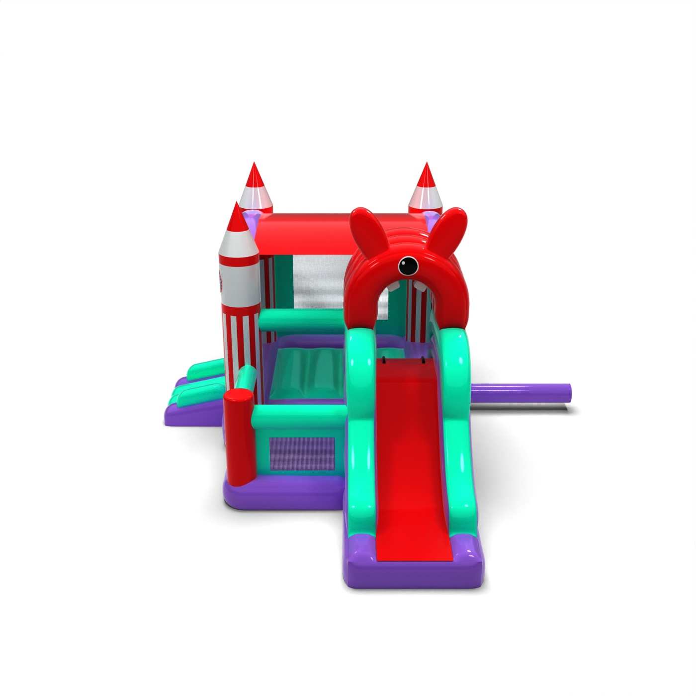 Wyrazista bryła i futurystyczna stylistyka sprawiają, że atrakcja dobrze wyróżnia się w przestrzeni wydarzenia. Zintegrowana strefa skakania i zjazdu zapewnia dzieciom dynamiczną i angażującą formę zabawy. Kosmiczne detale wizualne wzmacniają poczucie przygody i odkrywania nowych światów. To solidny wybór dla organizatorów poszukujących dmuchańca o uniwersalnym, ale charakterystycznym klimacie. Model sprawdzi się na większych festynach, piknikach rodzinnych i wydarzeniach tematycznych.