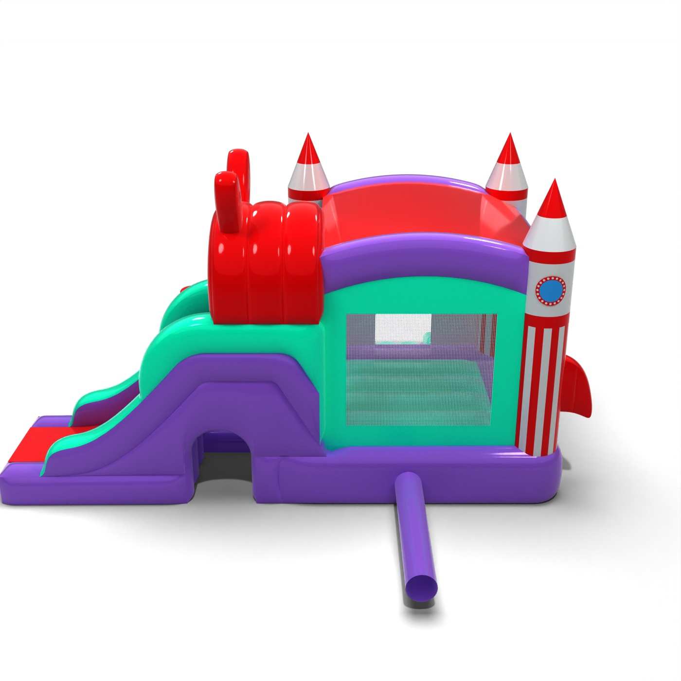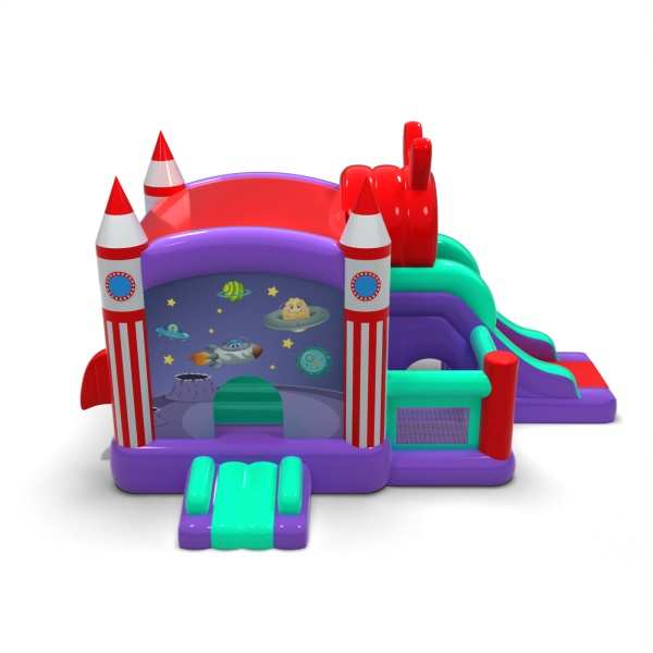 Dmuchany zamek combo z motywem kosmicznym to atrakcja dla wszystkich wielbicieli radosnych podskoków. Dzieci świetnie się na nim bawią – skaczą i wcielają się w role dostosowane do motywu atrakcji. Dmuchany zamek combo z motywem kosmicznym to atrakcja stworzona z myślą nie tylko o najmłodszych dzieciach. Dmuchańce z tej kategorii są zwykle bogato zdobione, zawierają wiele elementów, które zachęcają do podjęcia skocznej zabawy na świeżym powietrzu. Dmuchane zamki mogą tworzyć fantastyczny świat przeżyć podczas radosnych skoków z przyjaciółmi i rówieśnikami. Zamek dmuchany można łączyć z innymi produktami z naszej oferty, tworząc przy tym przepiękny i bajkowy świat przeżyć w czasie wielogodzinnych i radosnych podskoków.