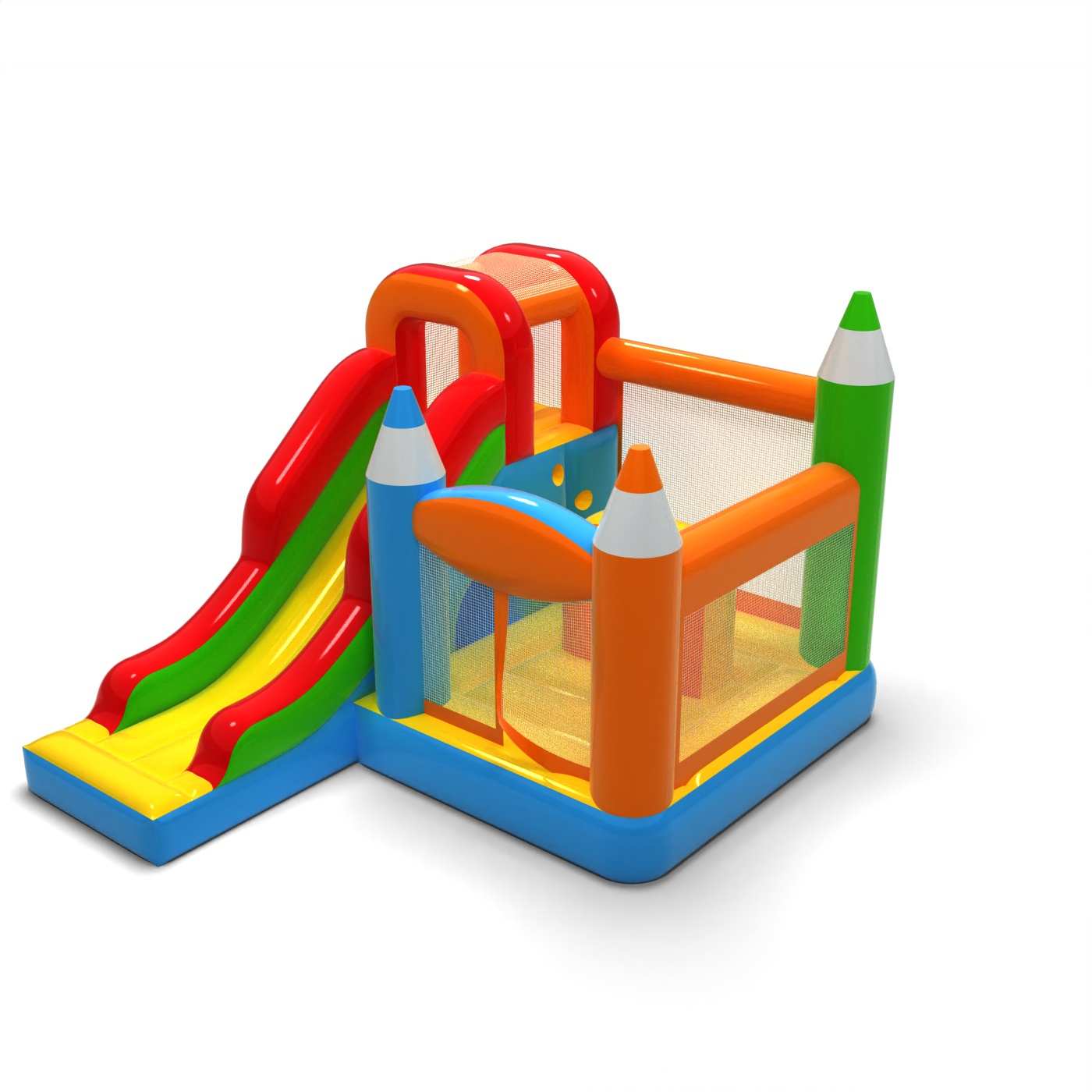 Dmuchany zamek kredki combo to atrakcja dla wszystkich wielbicieli radosnych podskoków. Dzieci świetnie się na nim bawią – skaczą i wcielają się w role dostosowane do motywu atrakcji. Dmuchany zamek kredki combo to atrakcja stworzona z myślą nie tylko o najmłodszych dzieciach. Dmuchańce z tej kategorii są zwykle bogato zdobione, zawierają wiele elementów, które zachęcają do podjęcia skocznej zabawy na świeżym powietrzu. Dmuchane zamki mogą tworzyć fantastyczny świat przeżyć podczas radosnych skoków z przyjaciółmi i rówieśnikami. Zamek dmuchany można łączyć z innymi produktami z naszej oferty, tworząc przy tym przepiękny i bajkowy świat przeżyć w czasie wielogodzinnych i radosnych podskoków.