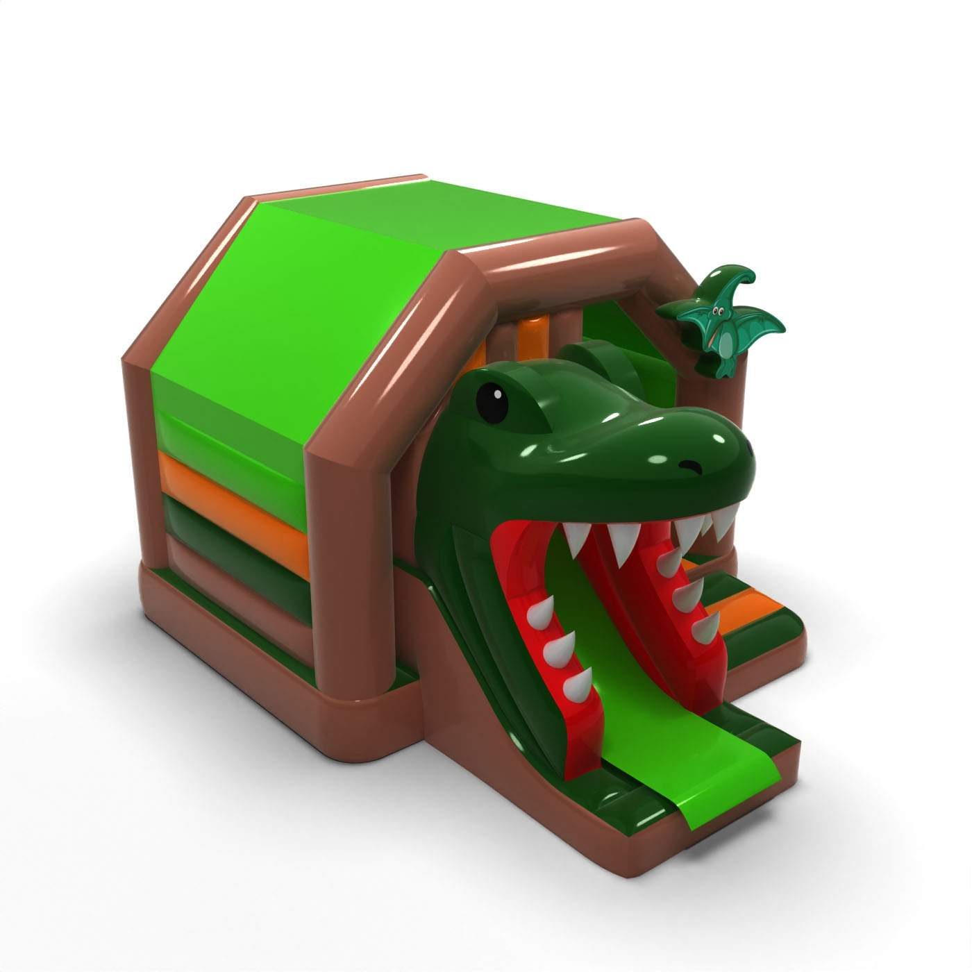 Paszcza dinozaura - dmuchaniec ze zjeżdżalnią to atrakcja dla wszystkich wielbicieli radosnych podskoków. Dzieci świetnie się na nim bawią – skaczą i wcielają się w role dostosowane do motywu atrakcji. Paszcza dinozaura - dmuchaniec ze zjeżdżalnią to atrakcja stworzona z myślą nie tylko o najmłodszych dzieciach. Dmuchańce z tej kategorii są zwykle bogato zdobione, zawierają wiele elementów, które zachęcają do podjęcia skocznej zabawy na świeżym powietrzu. Dmuchane zamki mogą tworzyć fantastyczny świat przeżyć podczas radosnych skoków z przyjaciółmi i rówieśnikami. Zamek dmuchany można łączyć z innymi produktami z naszej oferty, tworząc przy tym przepiękny i bajkowy świat przeżyć w czasie wielogodzinnych i radosnych podskoków.