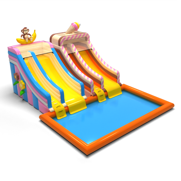 Zestaw dmuchanych zjeżdżalni wodnych z basenem (hawajskie i cukierkowe) jest doskonałą atrakcją zarówno dla dzieci, jak i również dla młodzieży i dorosłych. Wodne dmuchańce występują w wielu motywach oraz kolorach. Dmuchane zjeżdżalnie wodne stanowią rewelacyjną atrakcję dla wszystkich uczestników imprezy w czasie długich letnich dni. Dmuchane wodne zjeżdżalnie są absolutnym hitem wszystkich parków wodnych. Skorzystaj i baw się z przyjaciółmi i rówieśnikami na wodnych atrakcjach. Zjeżdżalnia wodna dmuchana urozmaici czas spędzony z rodziną i znajomymi przy akwenie wodnym lub na złotej, piaszczystej plaży.