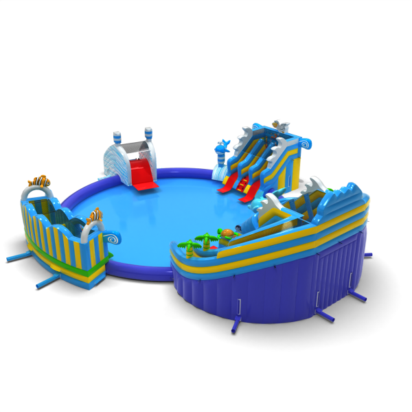 Dmuchany park wodny Hawajska Laguna jest doskonałą atrakcją zarówno dla dzieci, jak i również dla młodzieży i dorosłych. Wodne dmuchańce występują w wielu motywach oraz kolorach. Dmuchane zjeżdżalnie wodne stanowią rewelacyjną atrakcję dla wszystkich uczestników imprezy w czasie długich letnich dni. Dmuchane wodne zjeżdżalnie są absolutnym hitem wszystkich parków wodnych. Skorzystaj i baw się z przyjaciółmi i rówieśnikami na wodnych atrakcjach. Zjeżdżalnia wodna dmuchana urozmaici czas spędzony z rodziną i znajomymi przy akwenie wodnym lub na złotej, piaszczystej plaży.