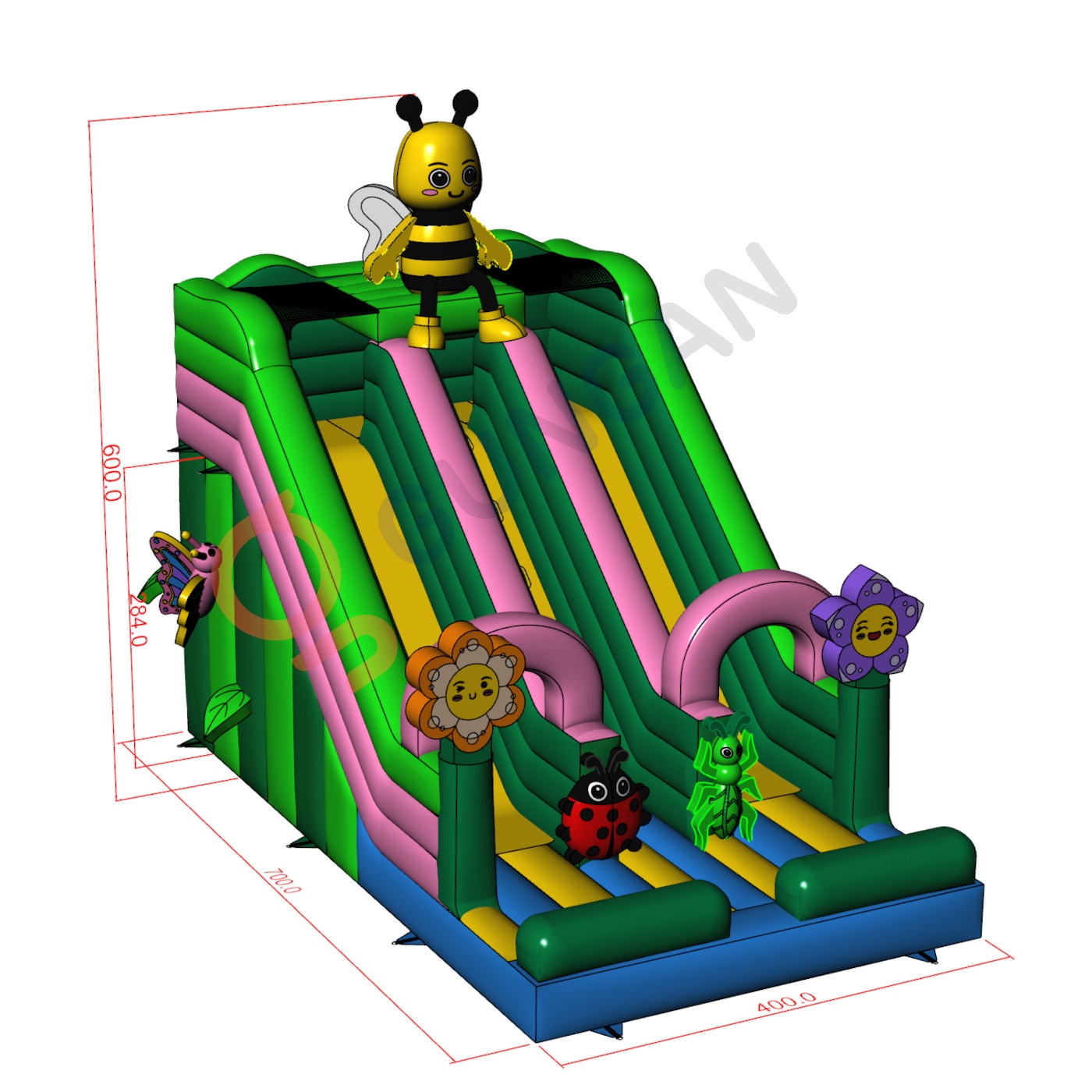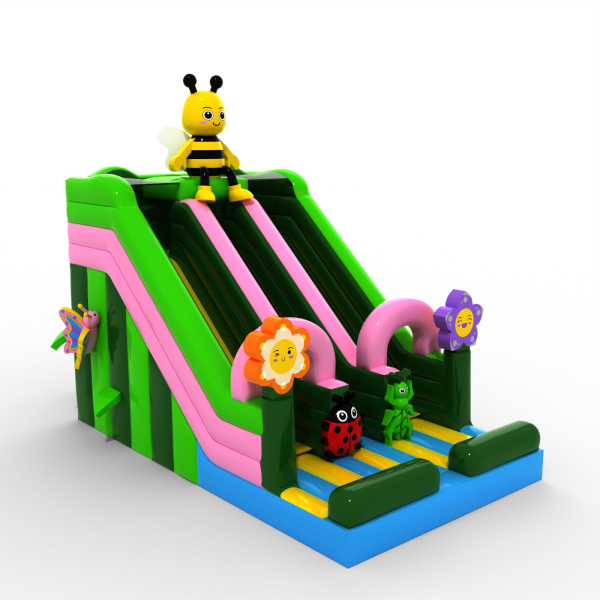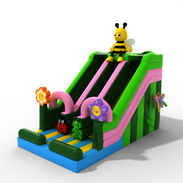 Podwójna zjeżdżalnia z motywem wiosennym to fantastyczny dmuchaniec dla dzieci i młodzieży. Świetnie sprawdzi się w zestawie z naszymi pozostałymi atrakcjami w różnych motywach. Podwójna zjeżdżalnia z motywem wiosennym wzbudza zainteresowanie dzieci, gdy tylko znajdzie się w zasięgu ich wzroku. Najmłodsi uczestnicy eventów przepadają za dobrą zabawą, dlatego ta zjeżdżalnia może być jednym z bardziej popularnych dmuchańców w Twojej ofercie. Dmuchańce z tej kategorii są efektowne, posiadają zwykle wiele zdobień i elementów, które zachęcają do podjęcia skocznej zabawy na świeżym powietrzu.