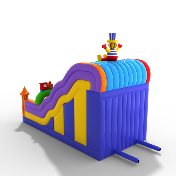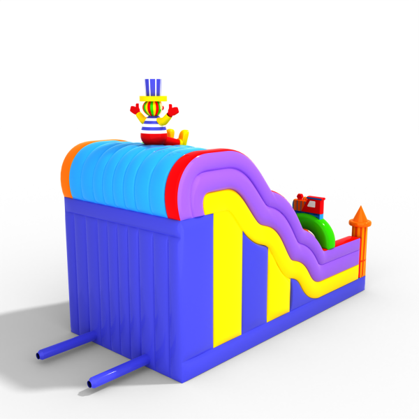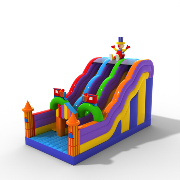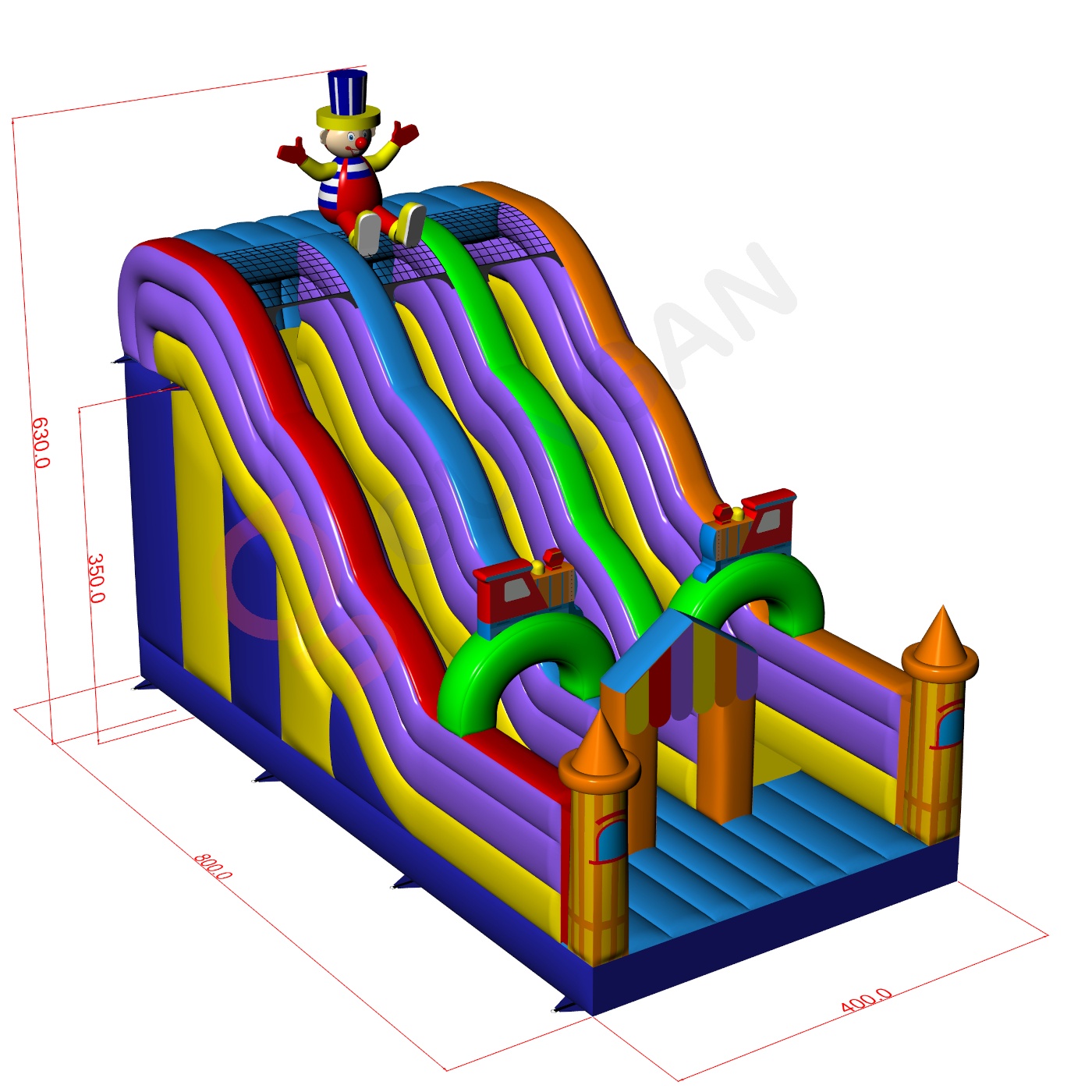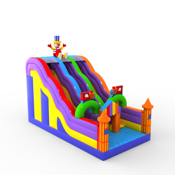 Podwójna otwarta zjeżdżalnia z motywem wesołego miasteczka to fantastyczny dmuchaniec dla dzieci i młodzieży. Świetnie sprawdzi się w zestawie z naszymi pozostałymi atrakcjami w różnych motywach. Podwójna otwarta zjeżdżalnia z motywem wesołego miasteczka wzbudza zainteresowanie dzieci, gdy tylko znajdzie się w zasięgu ich wzroku. Najmłodsi uczestnicy eventów przepadają za dobrą zabawą, dlatego ta zjeżdżalnia może być jednym z bardziej popularnych dmuchańców w Twojej ofercie. Dmuchańce z tej kategorii są efektowne, posiadają zwykle wiele zdobień i elementów, które zachęcają do podjęcia skocznej zabawy na świeżym powietrzu.
