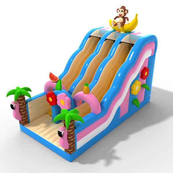 Podwójna otwarta zjeżdżalnia z motywem hawajskim to fantastyczny dmuchaniec dla dzieci i młodzieży. Świetnie sprawdzi się w zestawie z naszymi pozostałymi atrakcjami w różnych motywach. Podwójna otwarta zjeżdżalnia z motywem hawajskim wzbudza zainteresowanie dzieci, gdy tylko znajdzie się w zasięgu ich wzroku. Najmłodsi uczestnicy eventów przepadają za dobrą zabawą, dlatego ta zjeżdżalnia może być jednym z bardziej popularnych dmuchańców w Twojej ofercie. Dmuchańce z tej kategorii są efektowne, posiadają zwykle wiele zdobień i elementów, które zachęcają do podjęcia skocznej zabawy na świeżym powietrzu.