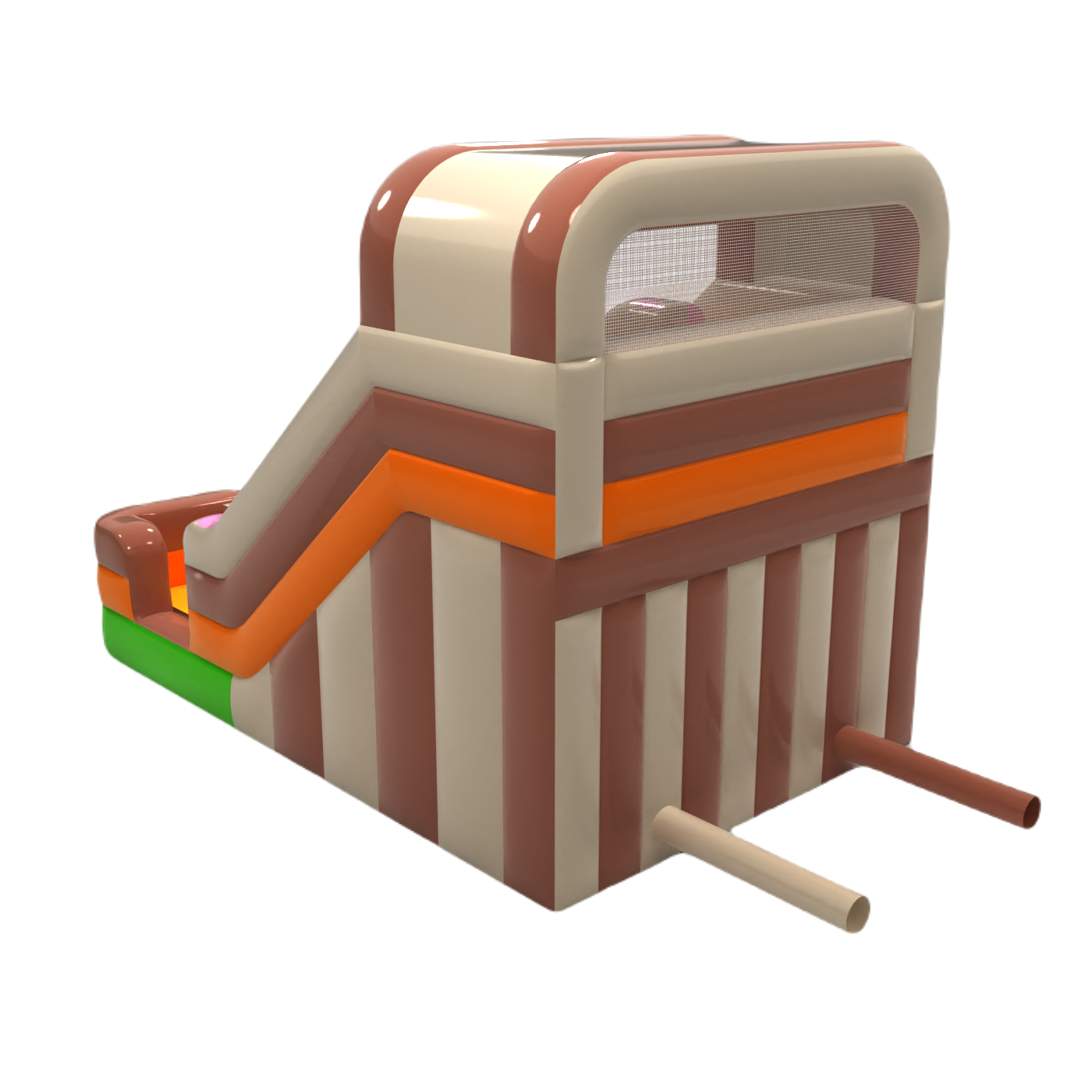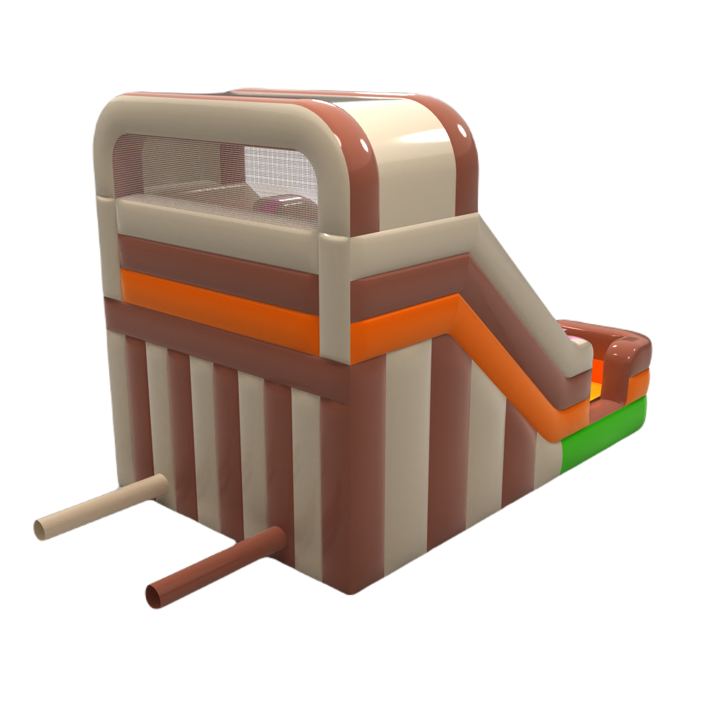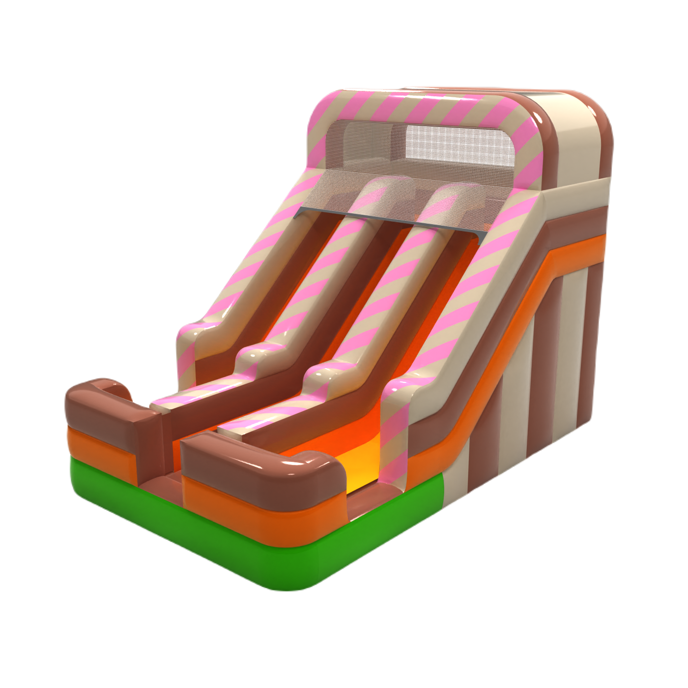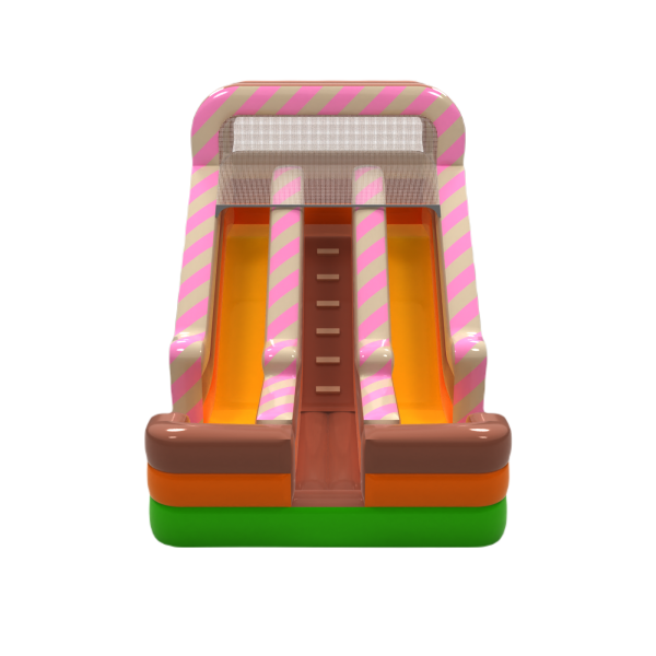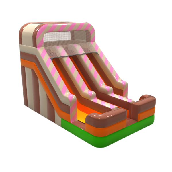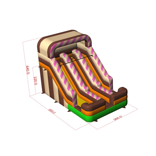 Podwójna dmuchana zjeżdżalnia z motywem cukierkowym to zabawa dla całej rodziny i nie tylko! Zaprojektowana by wzbudzać zainteresowanie i spełniać marzenia najmłodszych uczestników dmuchanej atrakcji.