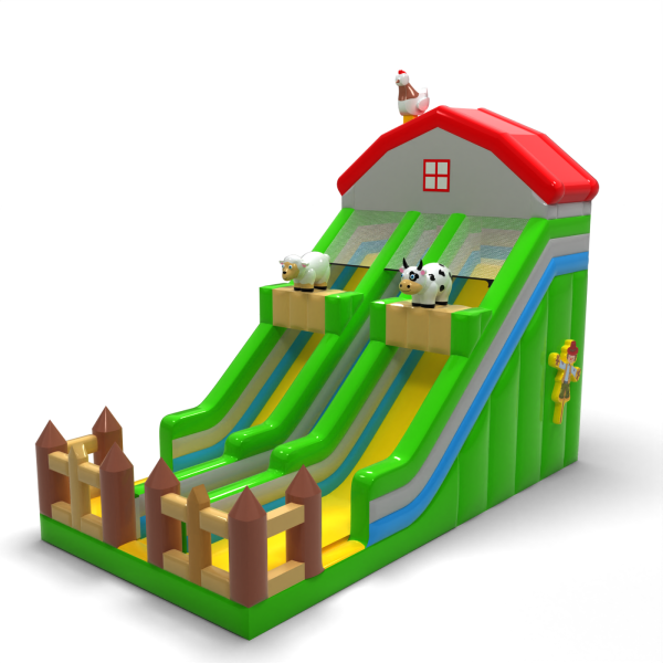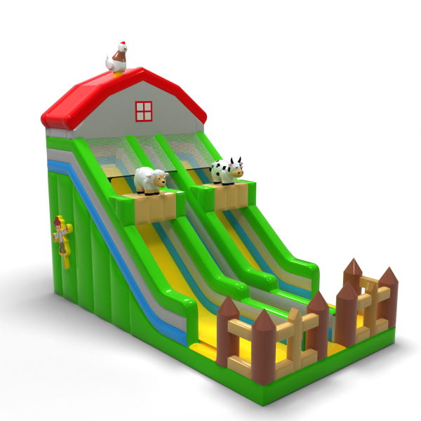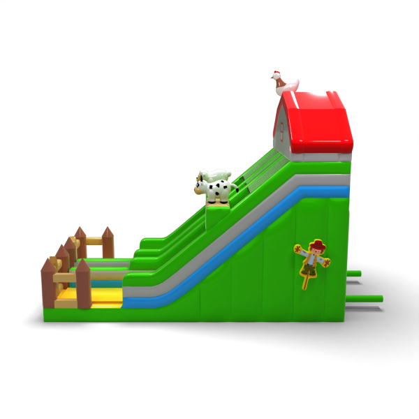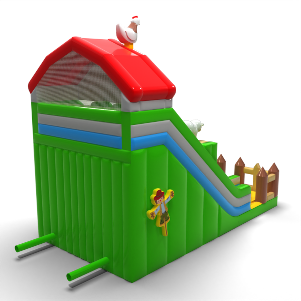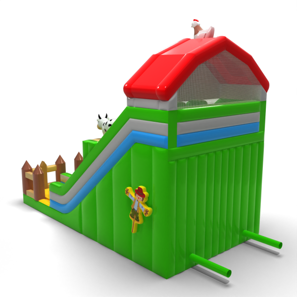 Powiększona dmuchana zjeżdżalnia w motywie farmerskim