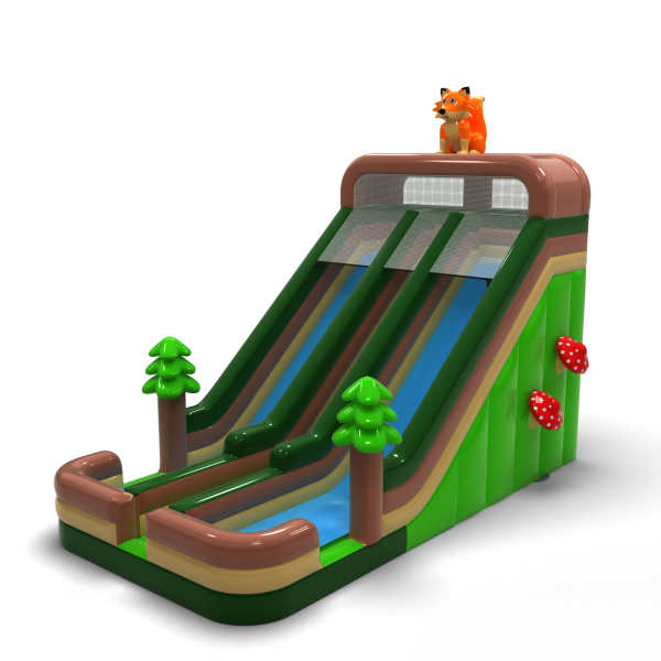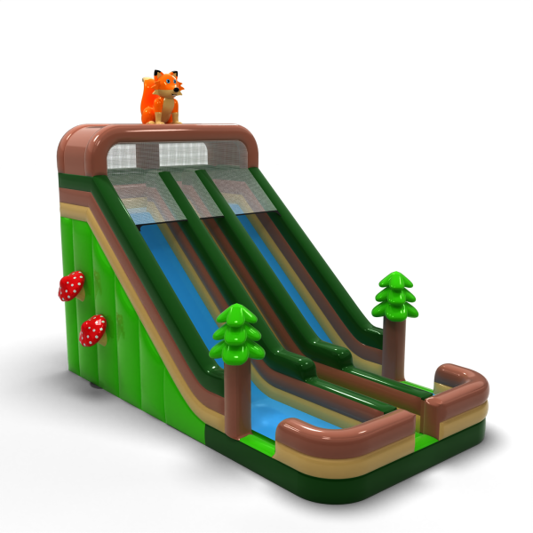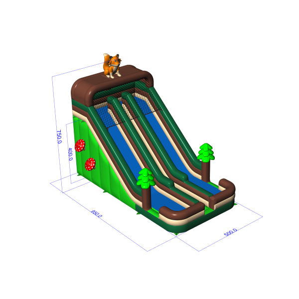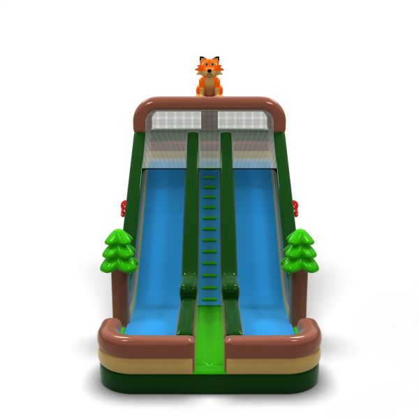 Podwójna powiększona zjeżdżalnia dmuchana w motywie leśnym