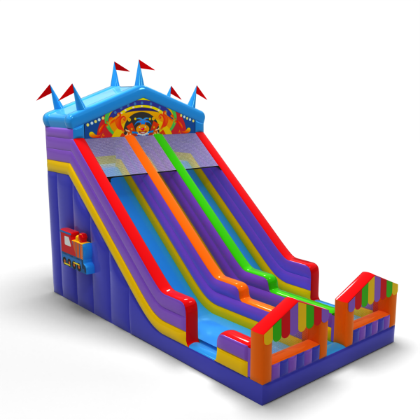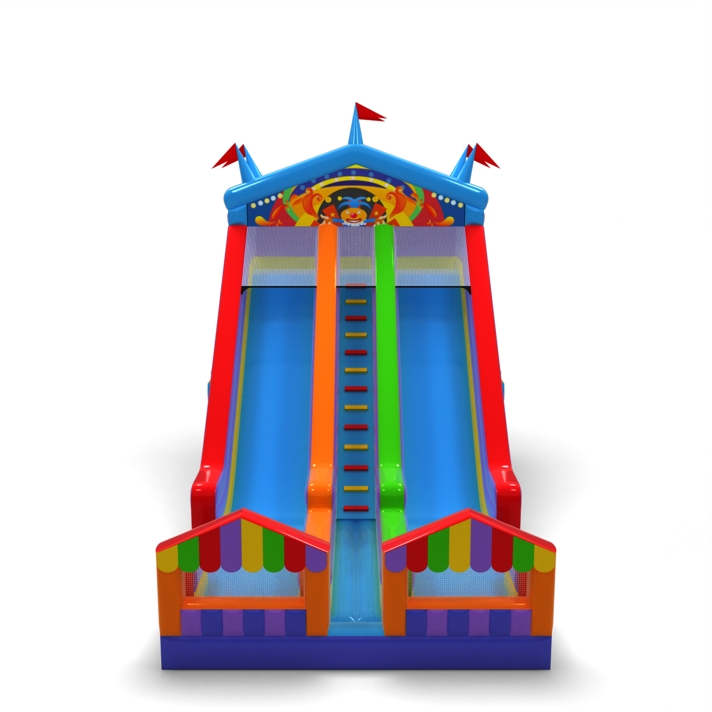 Podwójna powiększona zjeżdżalnia dmuchana w motywie wesołego miasteczka