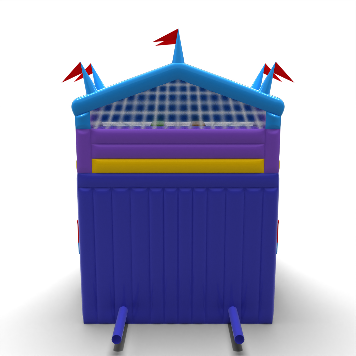 Zjeżdżalnia inspirowana wesołym miasteczkiem to klasyka rozrywki w nowoczesnym wydaniu. Intensywne kolory, cyrkowy daszek i grafiki w stylu funfair sprawiają, że konstrukcja doskonale prezentuje się z dużej odległości. Dwa tory pozwalają na szybkie rotacje uczestników, a solidna budowa sprawdza się w wynajmie przez cały sezon. To model stworzony do festynów, pikników miejskich i imprez masowych.