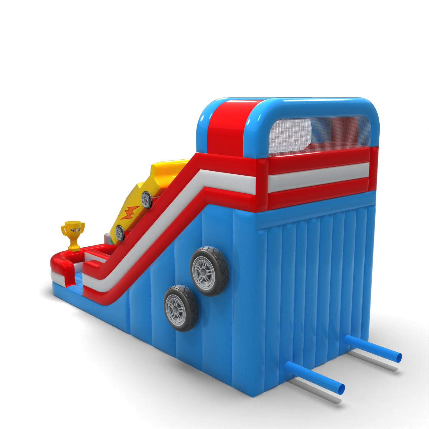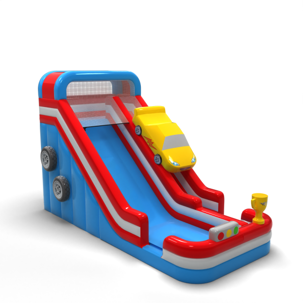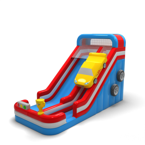 Powiększona dmuchana zjeżdżalnia w motywie samochodowym