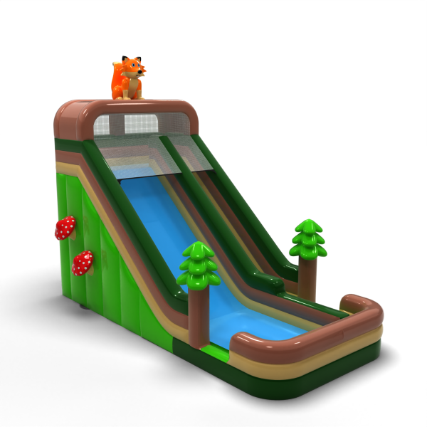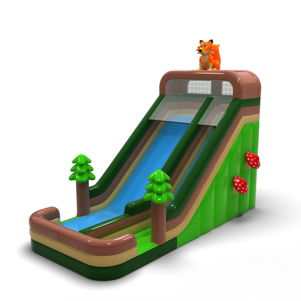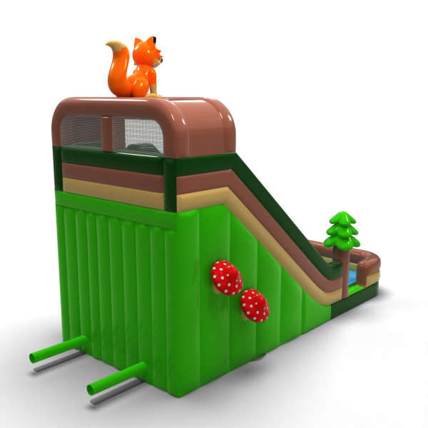 Powiększona dmuchana zjeżdżalnia w motywie leśnym