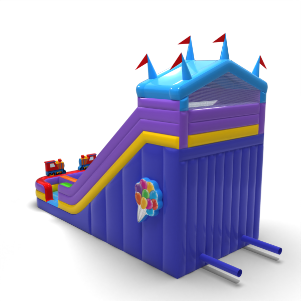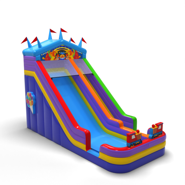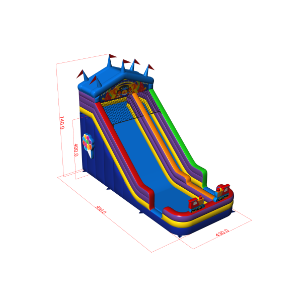 Powiększona dmuchana zjeżdżalnia w motywie wesołego miasteczka to fantastyczny dmuchaniec dla dzieci i młodzieży. Świetnie sprawdzi się w zestawie z naszymi pozostałymi atrakcjami w różnych motywach. Powiększona dmuchana zjeżdżalnia w motywie wesołego miasteczka wzbudza zainteresowanie dzieci, gdy tylko znajdzie się w zasięgu ich wzroku. Najmłodsi uczestnicy eventów przepadają za dobrą zabawą, dlatego ta zjeżdżalnia może być jednym z bardziej popularnych dmuchańców w Twojej ofercie. Dmuchańce z tej kategorii są efektowne, posiadają zwykle wiele zdobień i elementów, które zachęcają do podjęcia skocznej zabawy na świeżym powietrzu.