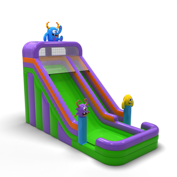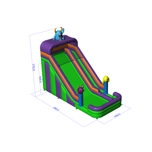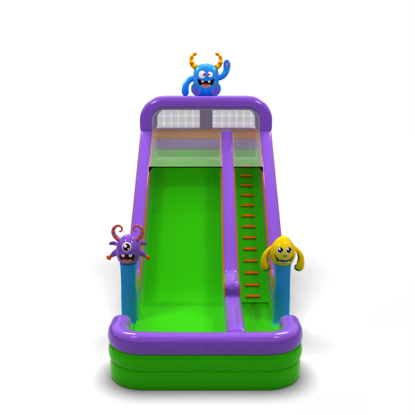Powiększona dmuchana zjeżdżalnia w motywie potworków to fantastyczny dmuchaniec dla dzieci i młodzieży. Świetnie sprawdzi się w zestawie z naszymi pozostałymi atrakcjami w różnych motywach. Powiększona dmuchana zjeżdżalnia w motywie potworków wzbudza zainteresowanie dzieci, gdy tylko znajdzie się w zasięgu ich wzroku. Najmłodsi uczestnicy eventów przepadają za dobrą zabawą, dlatego ta zjeżdżalnia może być jednym z bardziej popularnych dmuchańców w Twojej ofercie. Dmuchańce z tej kategorii są efektowne, posiadają zwykle wiele zdobień i elementów, które zachęcają do podjęcia skocznej zabawy na świeżym powietrzu.