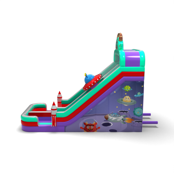 Powiększona dmuchana zjeżdżalnia w motywie kosmicznym