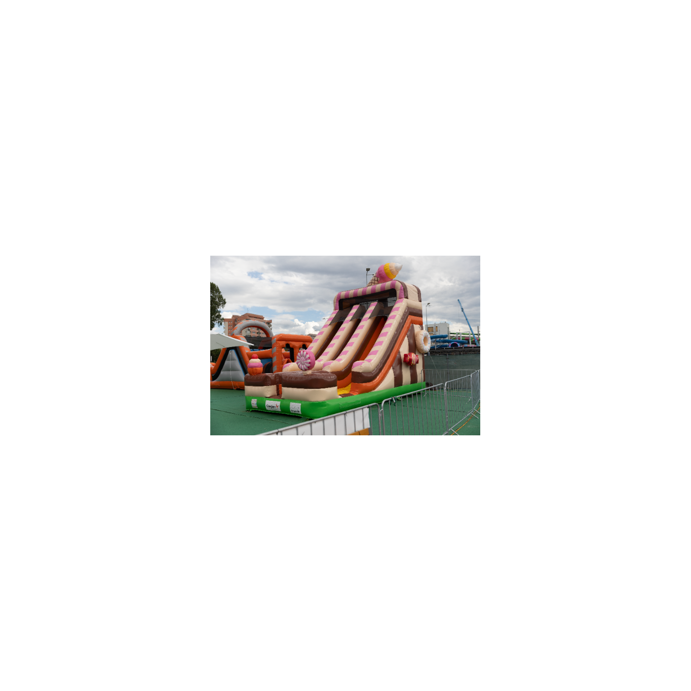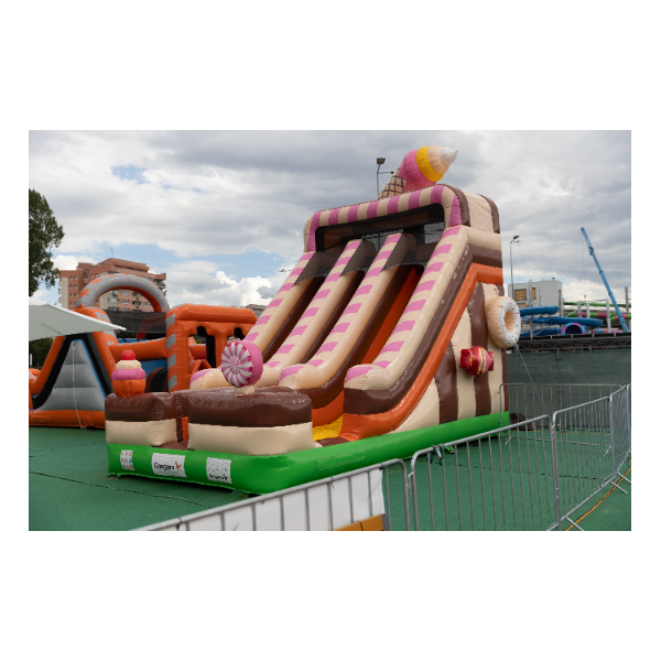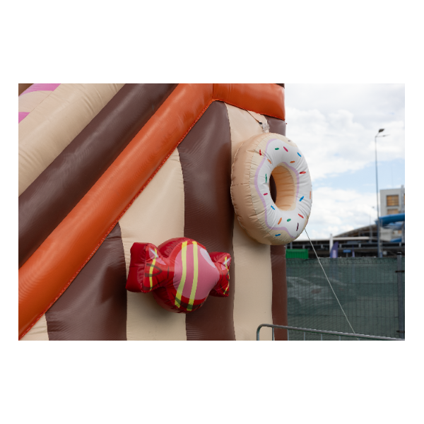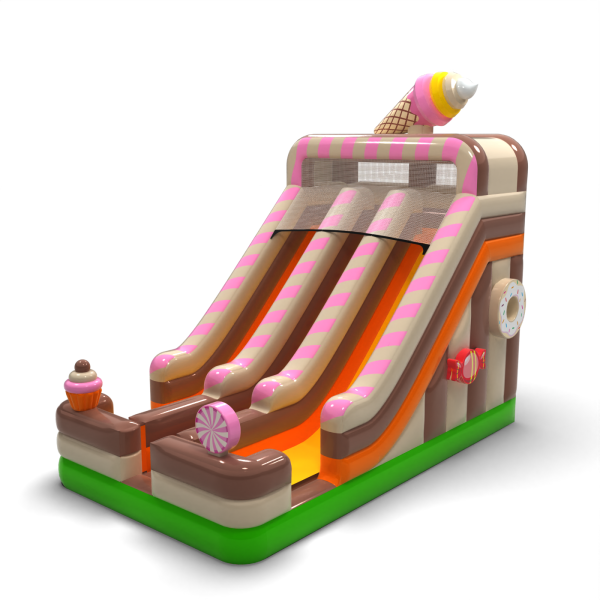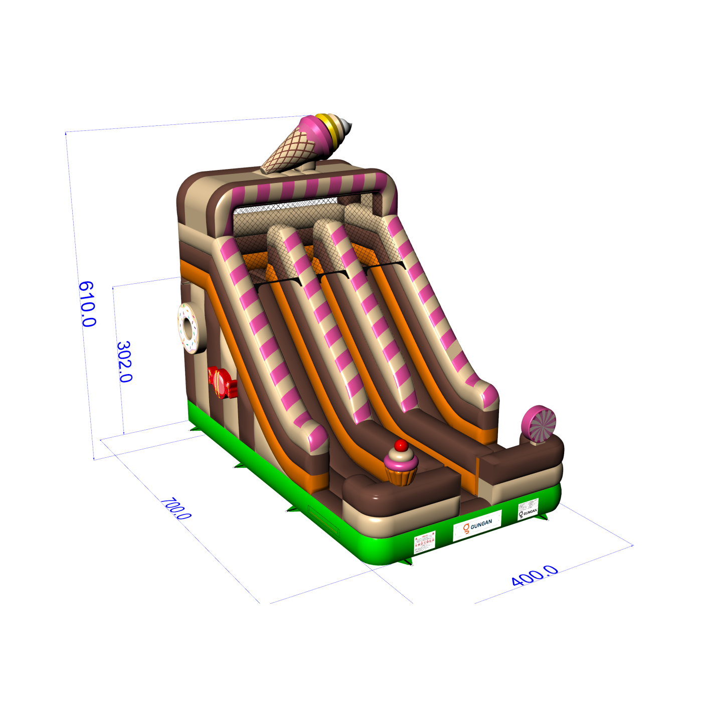 Podwójna dmuchana zjeżdżalnia z motywem cukierków to fantastyczny dmuchaniec dla dzieci i młodzieży. Świetnie sprawdzi się w zestawie z naszymi pozostałymi atrakcjami w różnych motywach. Podwójna dmuchana zjeżdżalnia z motywem cukierków wzbudza zainteresowanie dzieci, gdy tylko znajdzie się w zasięgu ich wzroku. Najmłodsi uczestnicy eventów przepadają za dobrą zabawą, dlatego ta zjeżdżalnia może być jednym z bardziej popularnych dmuchańców w Twojej ofercie. Dmuchańce z tej kategorii są efektowne, posiadają zwykle wiele zdobień i elementów, które zachęcają do podjęcia skocznej zabawy na świeżym powietrzu.
